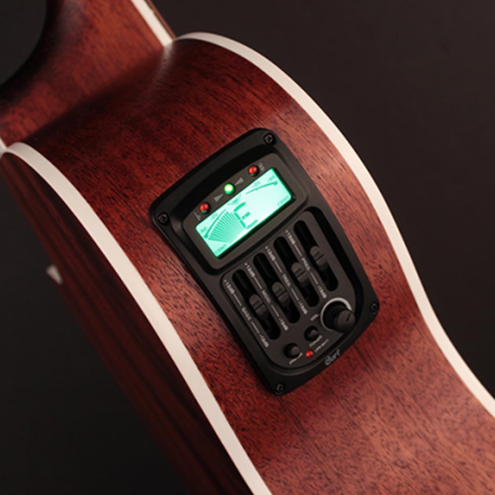 Перламутровое кольцо резонаторного отверстия и окантовка корпуса цвета слоновой кости подчеркивают красоту и изящность инструмента. Кроме того, гриф и задняя дека также имеют окантовку, защищающую гитару от повреждений.