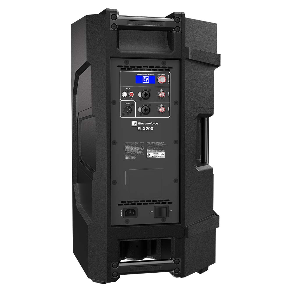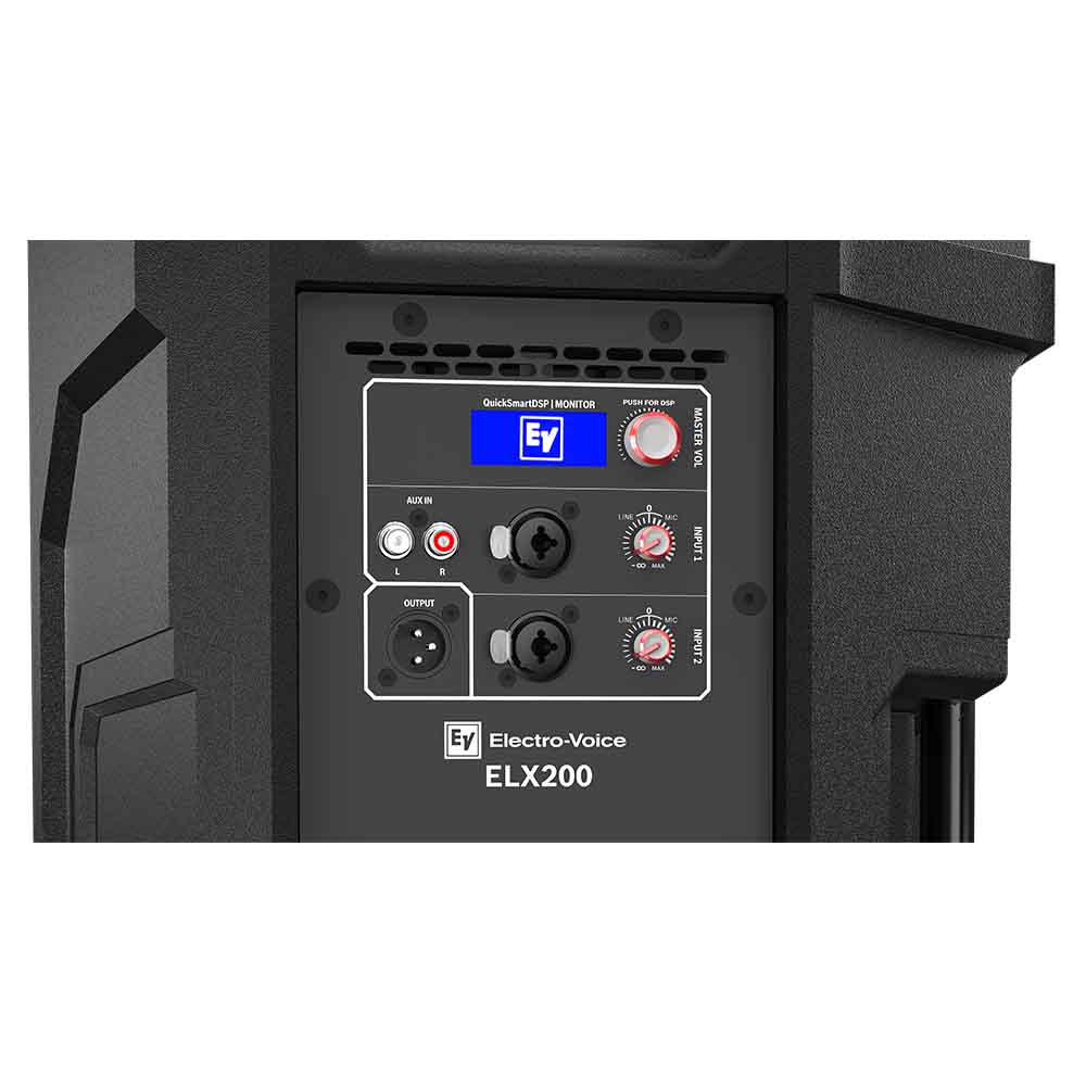 Electro-Voice ELX200-12P - это 2-х полосная многофункциональная активная акустическая система с 12-дюймовым вуфером, сигнальным процессором QuickSmartDSP, технологией волновода SST и поддержкой управления по Bluetooth. Благодаря усилителю класса D акустическая система ELX200 обладает мощным звучанием с низким уровнем искажений. Прочный корпус выполнен из пластика и имеет усиленную конструкцию, также предусмотрены 2 ручки для различных вариантов транспортировки, а в случае необходимости подвеса акустики, есть точки крепления M10.