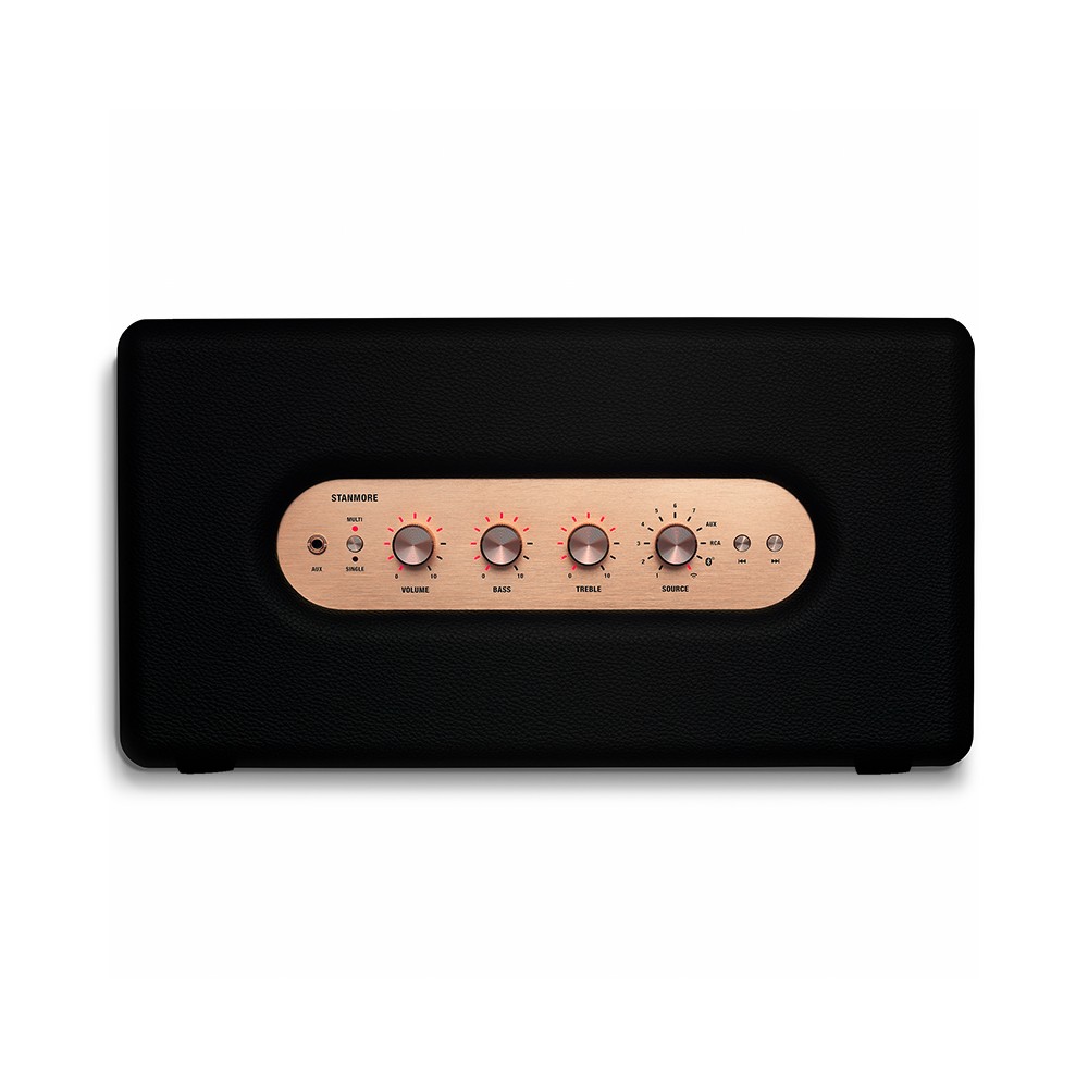 Следуя традициям, акустическая система Marshall Stanmore выполнена в фирменном винтажном стиле, оснащена рельефной поверхностью корпуса, которая имитирует фактуру кожи, также имеет золотую металлическую окантовку - и, конечно же, неповторимую фронтальной ретро-решетку с логотипом Marshall. Эта великолепная система сама по себе становится украшением интерьера и показателем отменного вкуса ее владельца. Над оформлением Stanmore трудились лучшие мастера-креативщики компании Marshall, воссоздав по-настоящему шикарный дизайн.