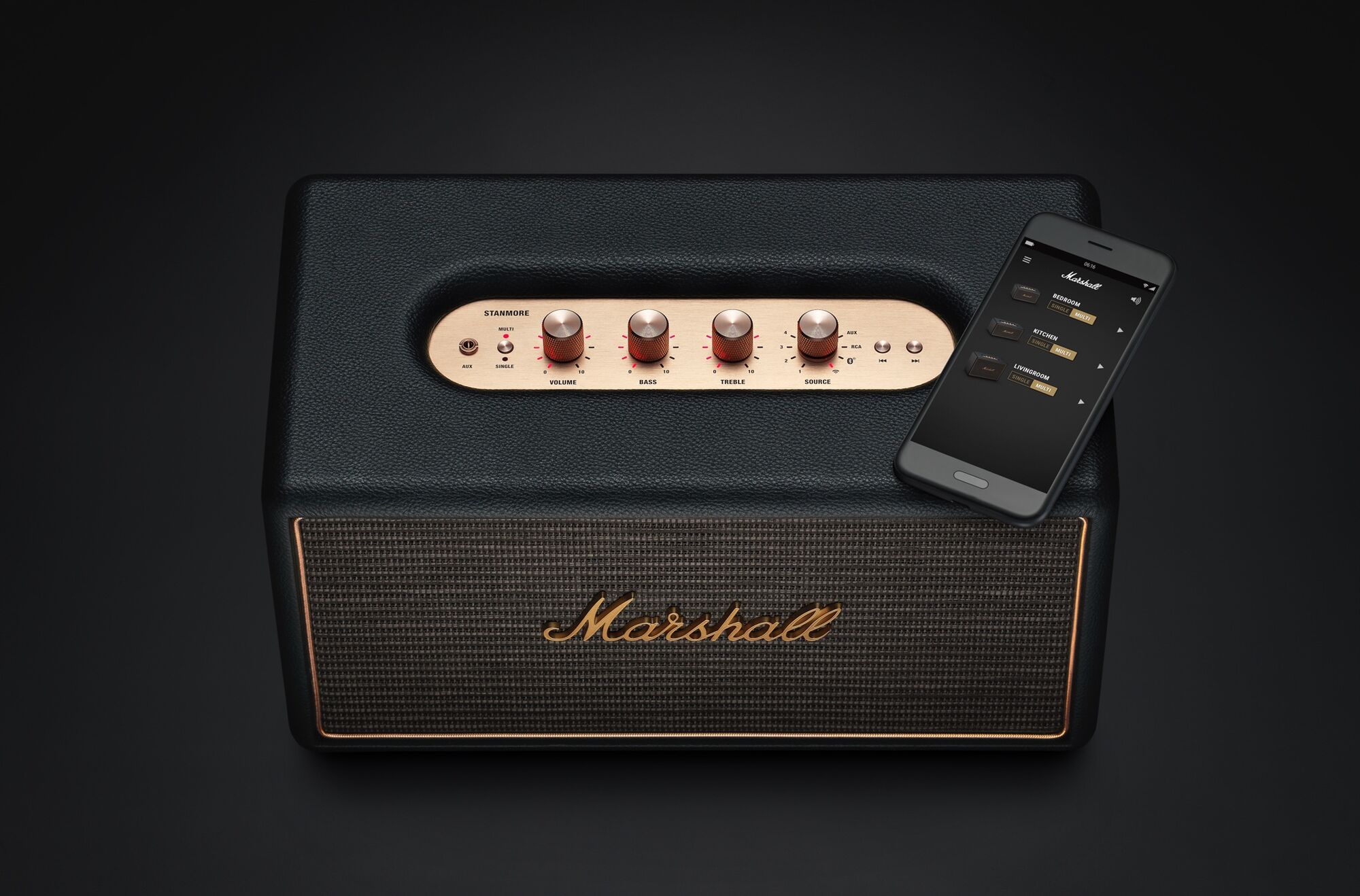 В дополнение к аналоговым ручкам управления вы можете использовать приложение Marshall Multi-Room Bluetooth для настройки или управления музыкой, которую вы слушаете.