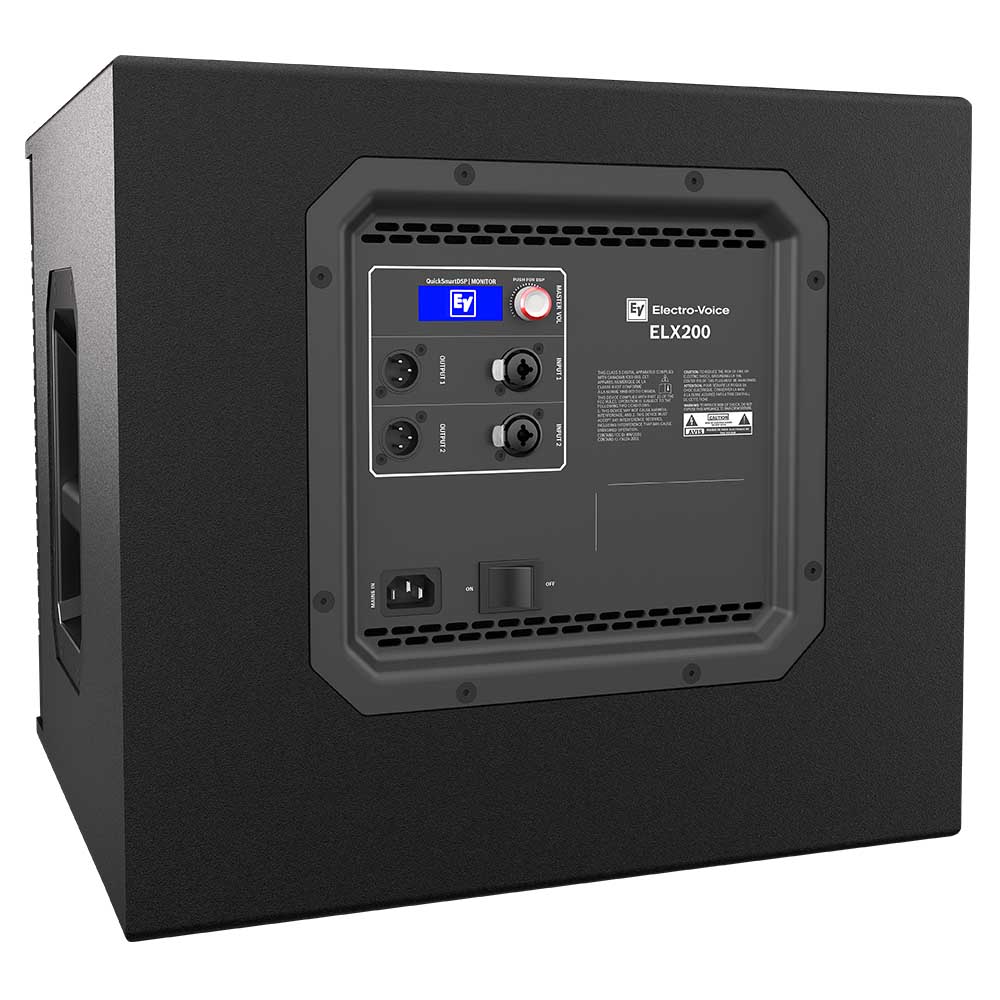ELX200-12SP - это активный сабвуфер, оснащенный высокоэффективным усилителем класса D мощностью 1200 Вт со встроенным звуковым процессором QuickSmartDSP, вместе с которыми громкоговоритель собственной разработки EV (НЧ-громкоговоритель EVS-12L 12'') воспроизводят пиковый уровень звукового давления до 129 дБ. Конфигурирование активных сабвуферов происходит с помощью 3-х заводских пресетов (Music, Live, Club), 5-тью пользовательских пресетов (имеется возможность сохранения и вызова), установки параметров кроссовера для согласования комплекта топ/саб, регулировок АЧХ с помощью 3-полосного эквалайзера, визуальному контролю состояния лимитеров, управлению сигнала на входах и на выходе для оптимальных настроек гейна. Активный сабвуфер выполнен в легком и прочном корпусе из фанеры 15 мм с фланцем для акустической штанги M20 и двумя удобными транспортировочными ручками. Сабвуфер ELX 200 идеально подходит для баров, ресторанов, кафе, лаунж-баров, караоке-баров, мобильных DJ инсталляций и маленьких площадок.