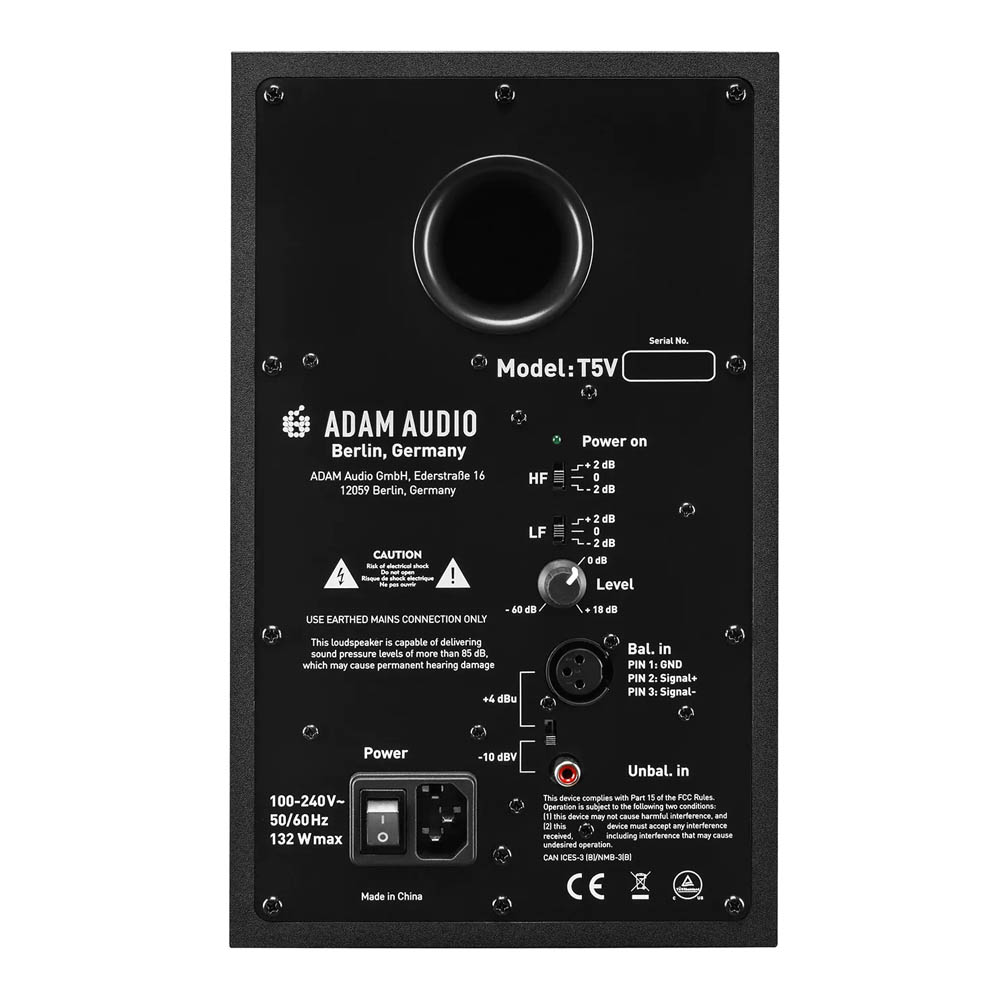 Компактный скошенный корпус с задним портом фазоинвертора позволяет разместить монитор в любом месте вашей комнаты, независимо от её площади. Adam Audio T5V имеет встроенные кроссоверы и эквалайзер, управляемые DSP, а также многоканальные аналоговые соединения. Оснащенный усилителем класса D мощностью 50 Вт для низкочастотного динамика и усилителем класса D мощностью 20 Вт для твитера U-ART, T5V обеспечивает уровень звукового давления до 106 дБ на пару.