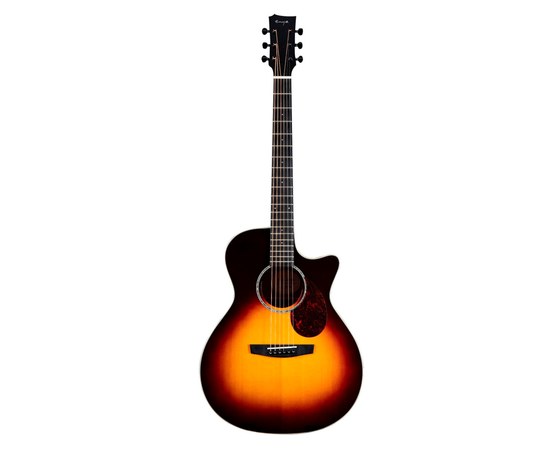 Акустическая гитара, форма корпуса гранд аудиториум с вырезом, размер 4/4 (41"), верхняя дека из массива ситхинской ели (А), обечайка и нижняя дека и гриф из красного дерева, колки Custom Black Steel 1:18, ширина порожка 43 мм, корпус цвета санбесрт с глянцевой отделкой, окантовка ABS, в комплекте фирменный водонепроницаемый чехол, анкерный ключ + порожек.