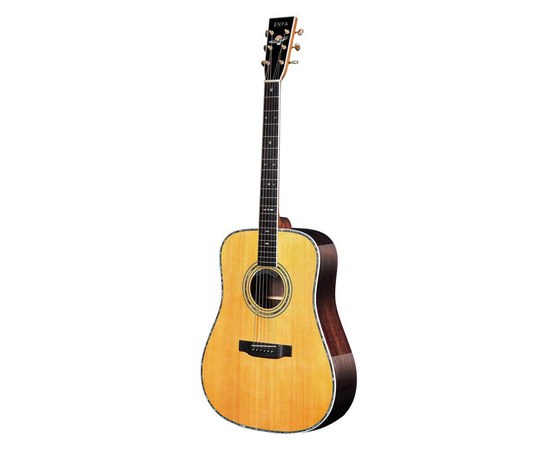 Акустическая гитара Enya T-10SD воспроизводит чистое сбалансированное звучание, благодаря высококачественной выдержанной древесине и продуманной сборки. Верхняя дека из массива ситкинской ели и корпус из отборного индийского палисандра создают широкий динамический диапазон тонов, от теплых ламповых до энергичных и агрессивных. Другие усовершенствованные особенности включают тонкий гриф из африканского красного дерева "Конго" с накладкой из черного дерева, окантовку корпуса Haliotis, седло и порожек из кости.
