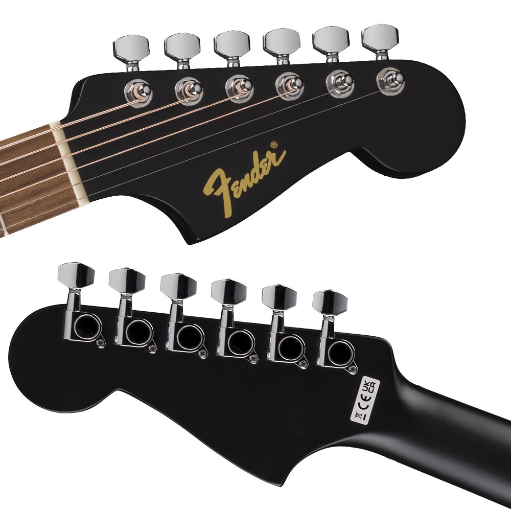 - 6-рядная культовая головка грифа Fender® – фирменный внешний вид и прямая линия струн для идеальной стабильности
