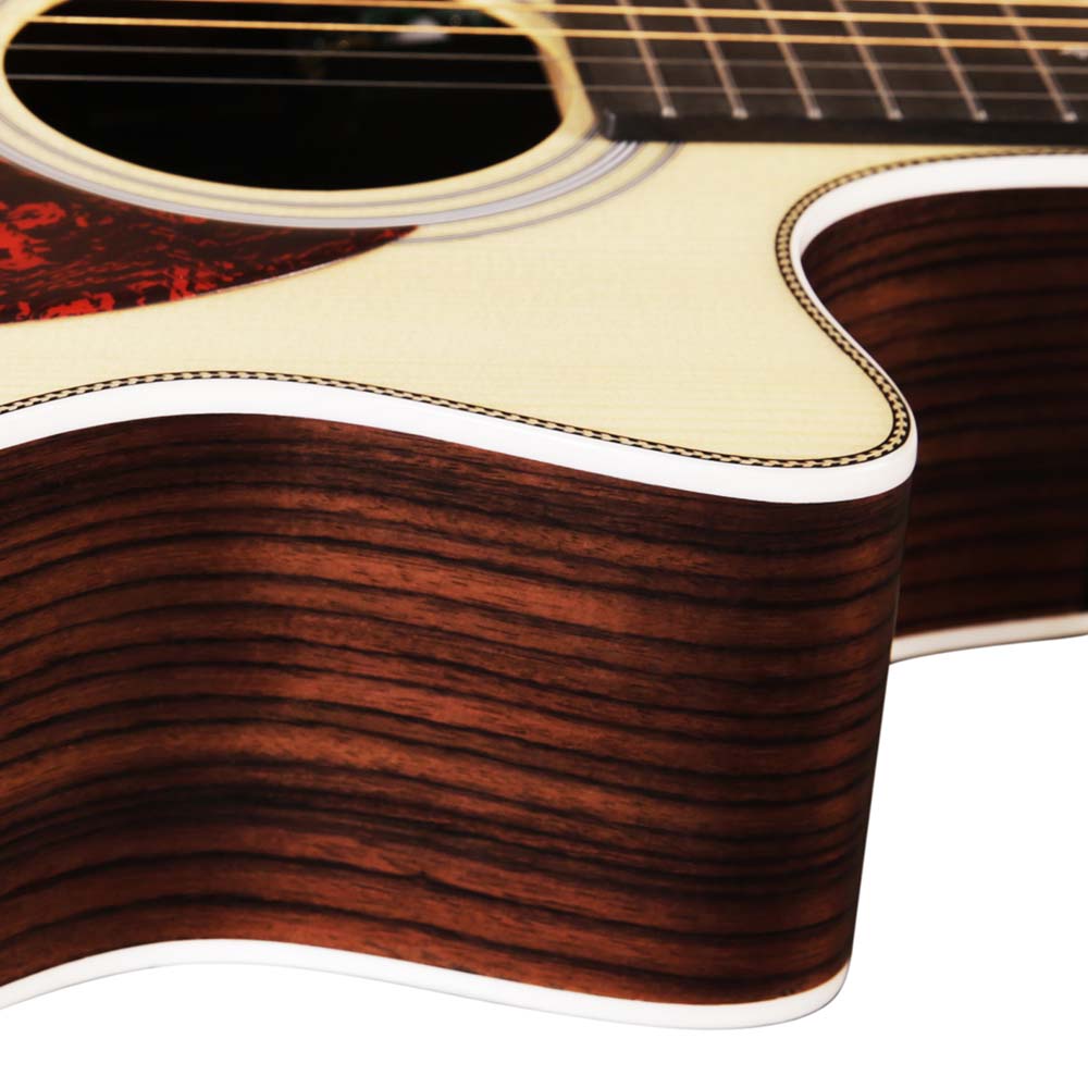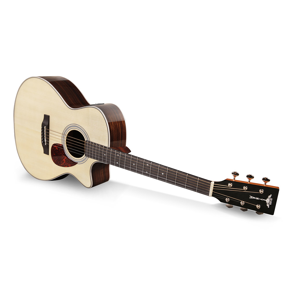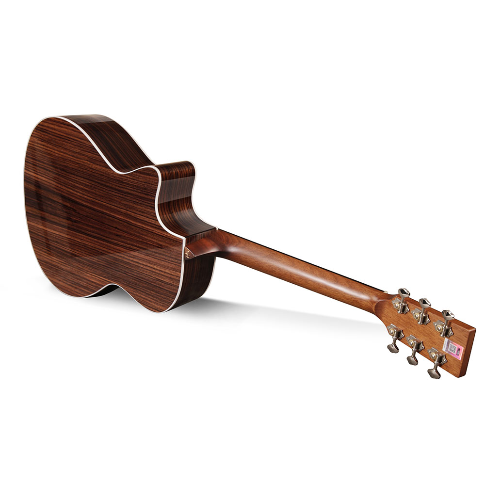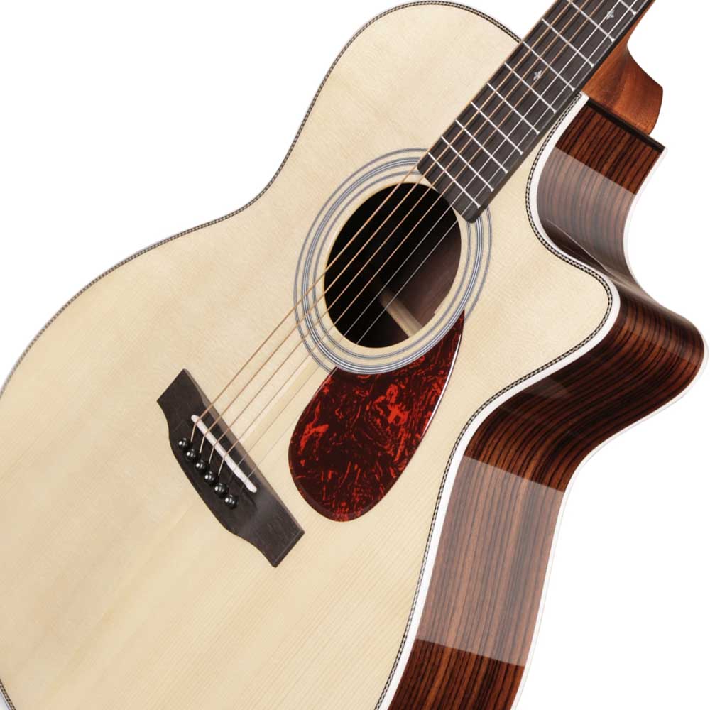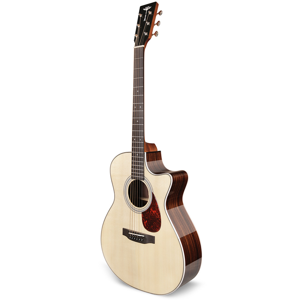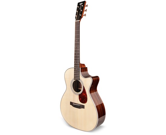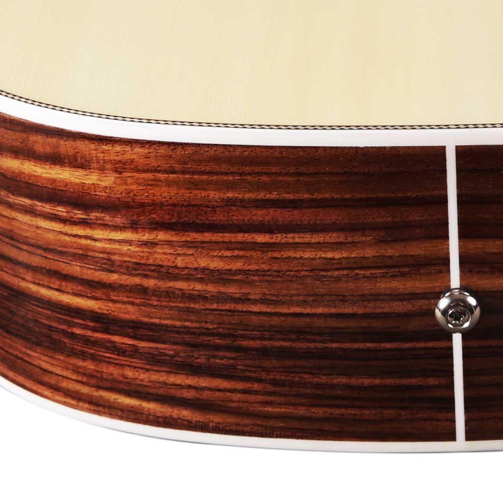 Верхняя дека из массива ели Энгельмана формирует яркое, чистое и хорошо читаемое звучание с отличной динамикой. Нижняя дека и обечайка из индийского палисандра добавляют теплоту и глубину, делая тон сбалансированным и музыкальным. Такое сочетание материалов раскрывает характер инструмента и позволяет ему звучать объемно и естественно.