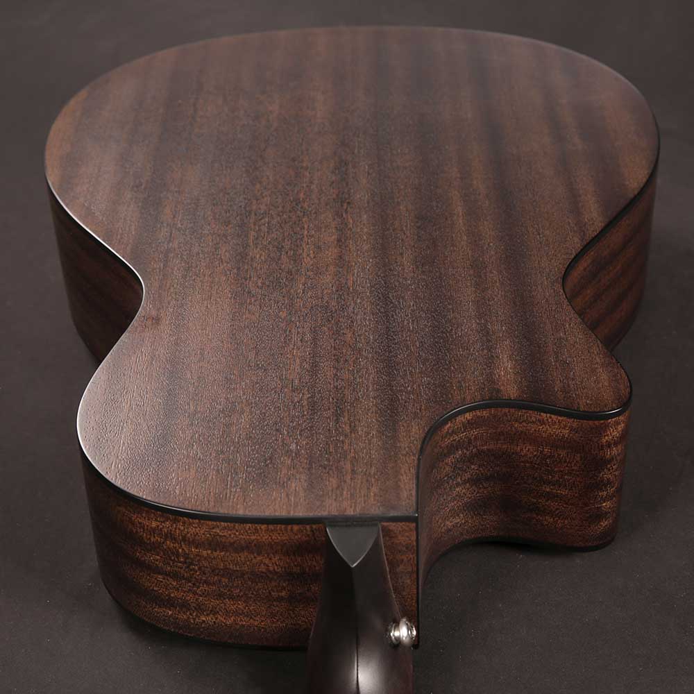 Верхняя дека из ели формирует яркое, чистое и хорошо читаемое звучание с отличной динамикой. Нижняя дека и обечайка из сапеле добавляют теплоту и глубину, делая тон сбалансированным и музыкальным. Такое сочетание материалов раскрывает характер инструмента и позволяет ему звучать объемно и естественно.