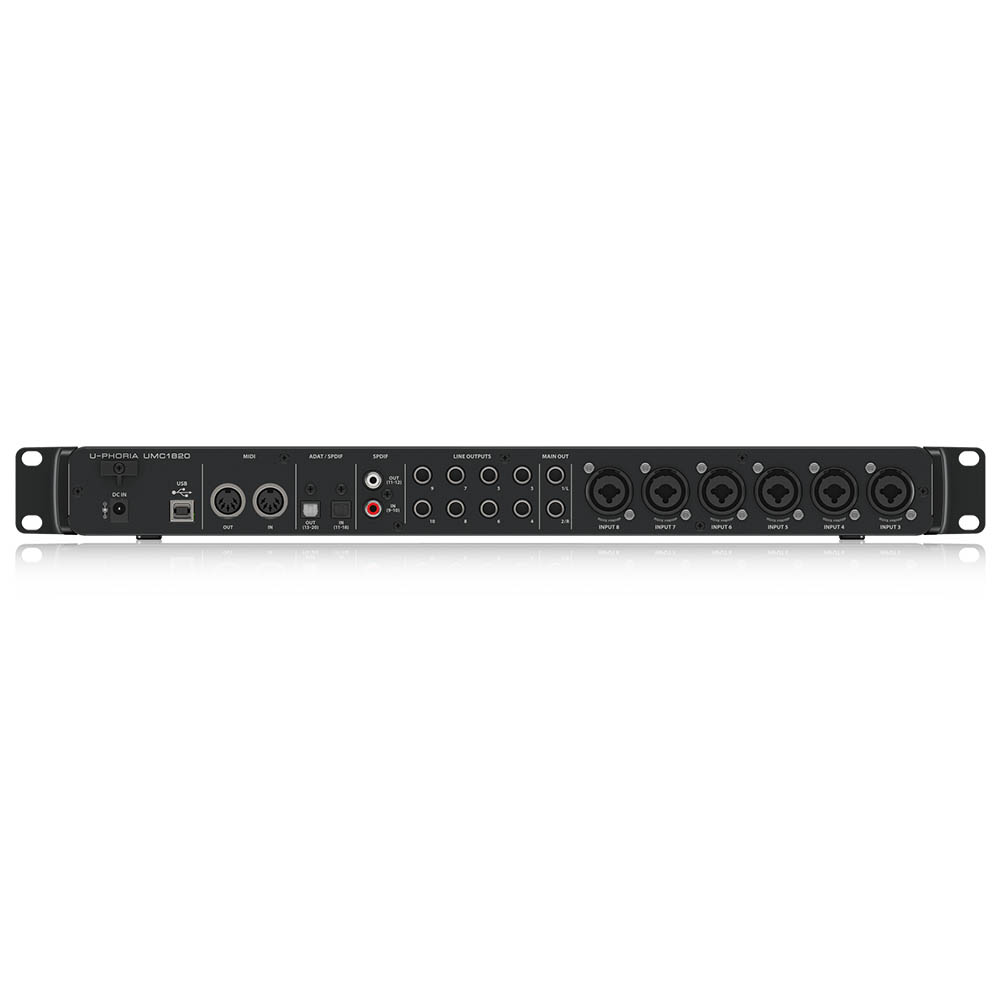Вход ADAT позволяет подключать Behringer ADA8200 (продается отдельно), расширяя его до 16 микрофонных предусилителей, разработанных Midas, так что вы можете использовать микрофон для всего диапазона! А выходов достаточно, чтобы передавать каждому исполнителю отдельные миксы в наушники. UMC1820 поддерживает все стандартные форматы ввода-вывода, включая S / PDIF, ADAT, S / MUX и аналоговые.