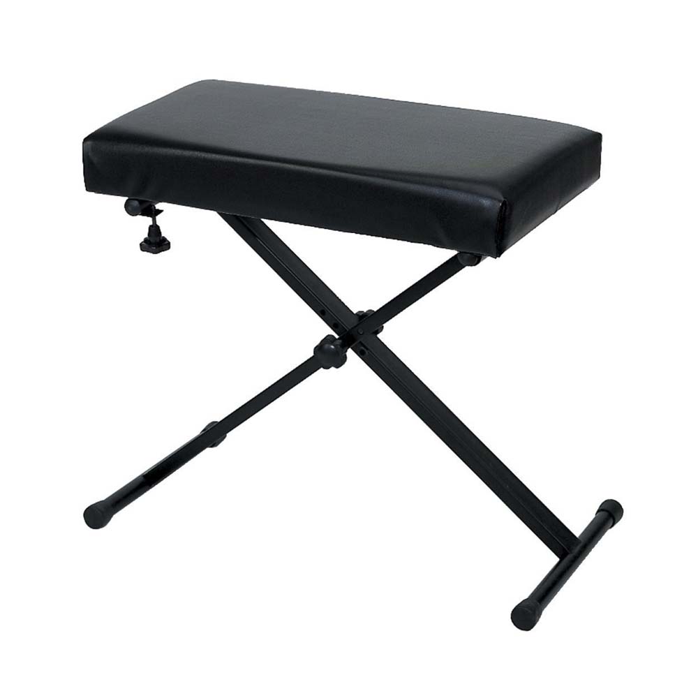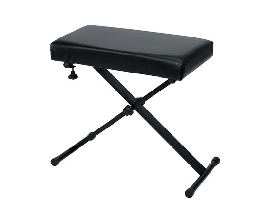 Банкетка для пианино, конструкция из стальных трубок, складные ножки, 4 различных настройки высоты, размеры сиденья - 60 х 32 см, поверхность сидушки из черной искусственной кожи, толщина уплотнителя 7 см, высота 54 - 66 см, вес 5,5 кг.