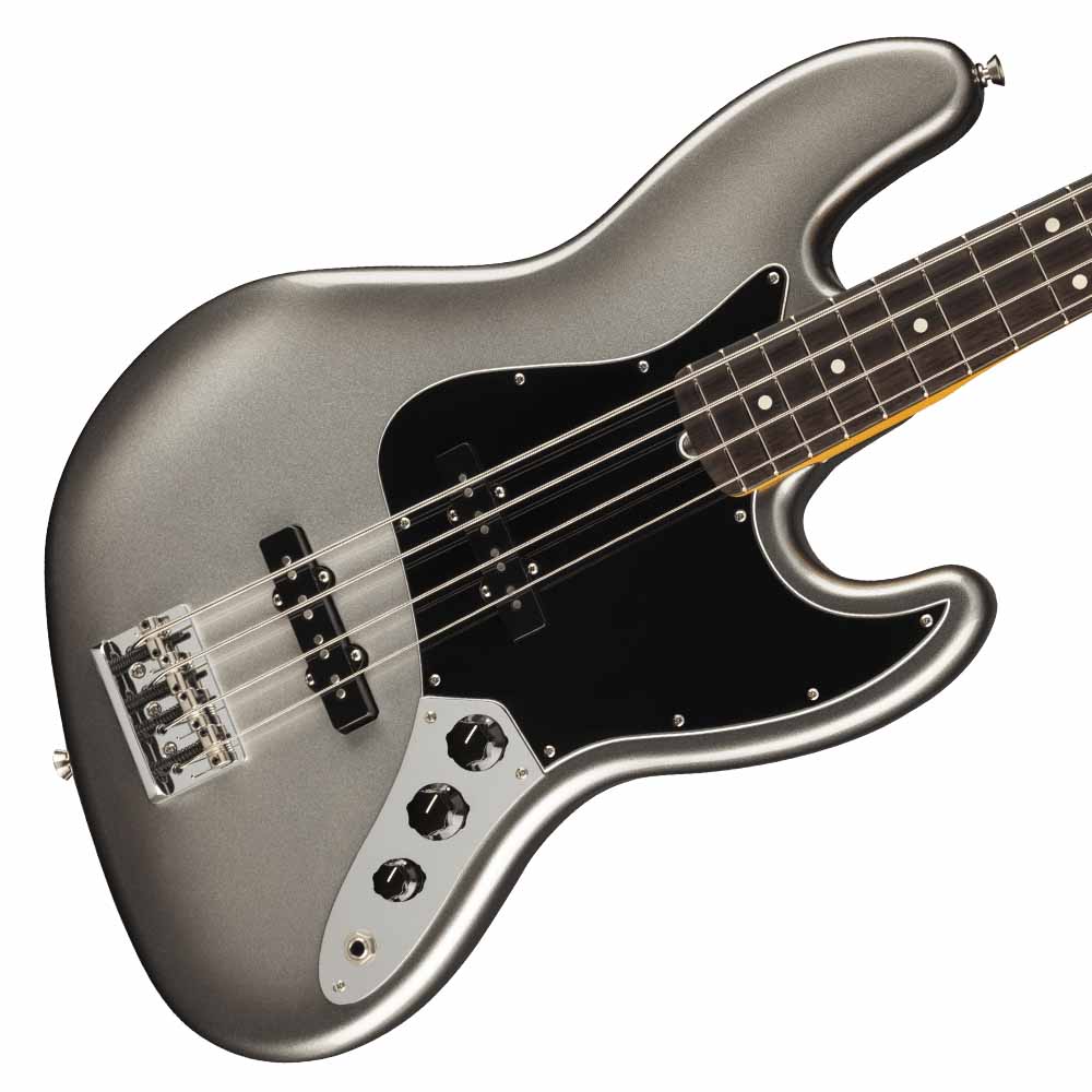 4-струнная бас-гитара, серия American Professional II Jazz Bass®, корпус из ольхи, гриф из клёна, тонкий профиль грифа "C", накладка на гриф из палисандра с радиусом 9,5 дюймов, закругленные края накладки, сатиновое покрытие грифа Super-Natural, новая форма пятки грифа, два звукоснимателя V-Mod II Jazz Bass с одной катушкой, костяной порожек, 20 узких высоких ладов, бридж HiMass™ Vintage, графитовые стержни Posiflex™ для усиления грифа, хромированные латунные сёдла, в комплекте роскошный жесткий кейс, цвет Mercury.
