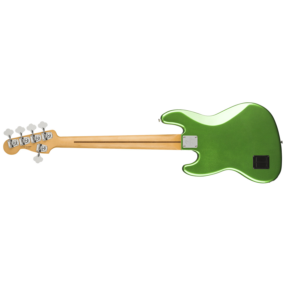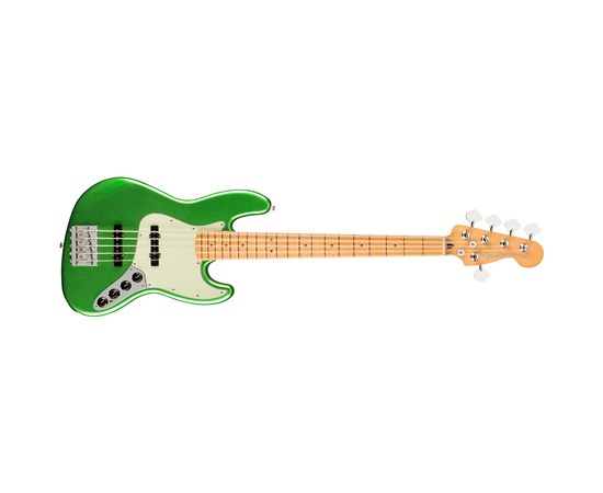 5-ти струнная бас-гитара, форма Jazz Bass, корпус из ольхи, гриф из клена, накладка грифа из клена радиусом 12” (305 мм), профиль грифа Модерн «C», звукосниматели Player Plus Noiseless™ Jazz Bass® (SS); мензура 34" (864 мм), колки открытого типа, эквалайзер с 4 регуляторами, цвет Cosmic Jade.