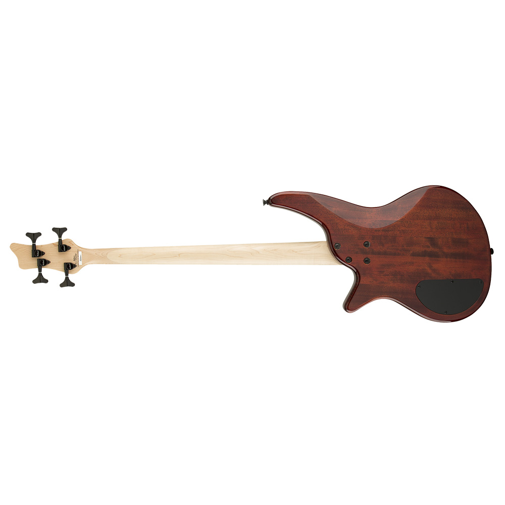 4-х струнная бас гитара, форма Spectra Bass, корпус из тополя с глянцевым покрытием, гриф из клёна с креплением на болтах, накладка на гриф из лавра радиусом 12 дюймов с 24 ладами, бриджевый звукосниматель Jackson J-Style и нековый звукосниматель Jackson P-Style, регулятор громкости (с двухтактным переключателем для обхода активной цепи), контроль смешивания и контроль усиления басов (только активный), хардтейл-бридж Jackson® Hardtail, герметичные литые колки Jackson® Sealed Die-Cast, уникальная конфигурация головы грифа Jackson 2x2, цвет Tobacco Burst.