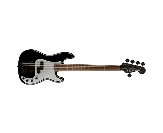 5-струнная бас-гитара, корпус Precision Bass® из тополя, гриф из жареного клена с С-образным профилем, накладка на гриф из индийского лавра, звукосниматели Squier® SQR™ в конфигурации PH, бридж 5-Saddle Standard, винтажные колки, черная фурнитура, пикгард из 1-слойного анодированного алюминия, графитовый порожек, черный цвет.