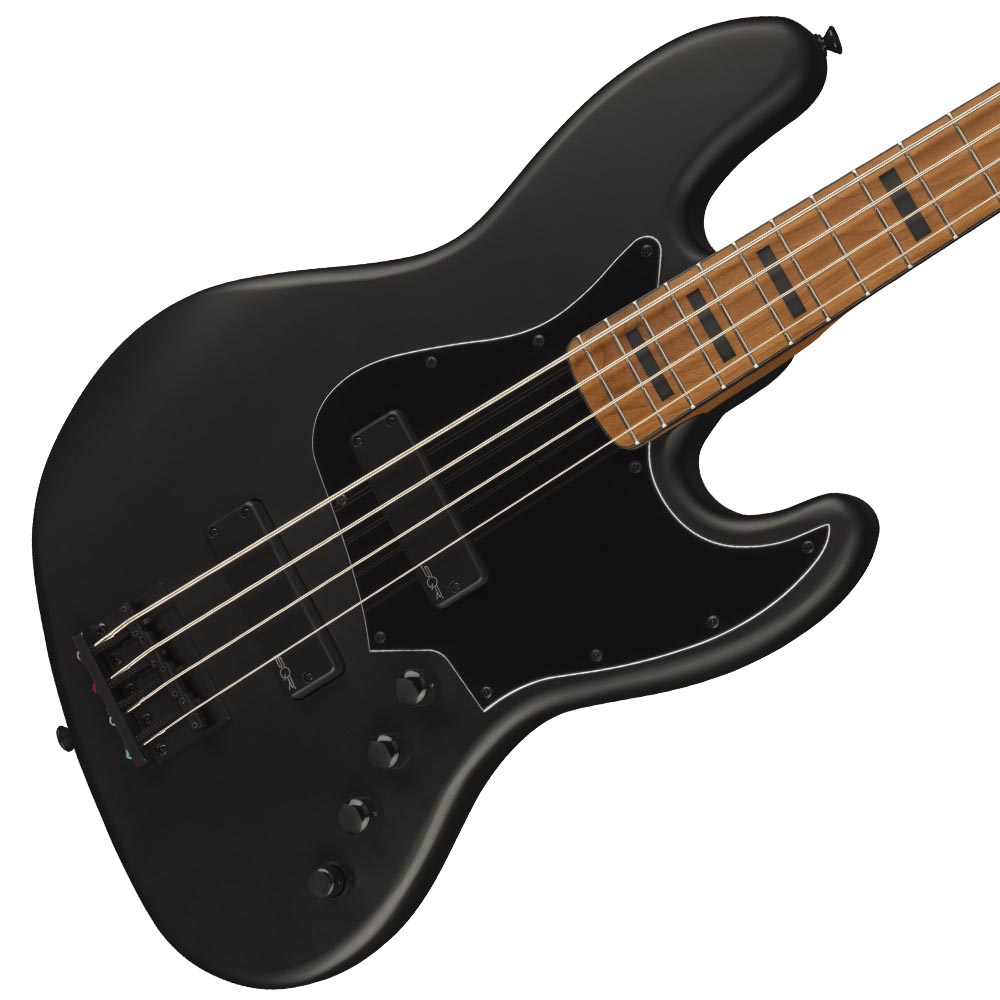 FSR Contemporary Active Jazz Bass® HH, Roasted Maple Fingerboard with Blocks and Binding, Black Pickguard, Flat Black |