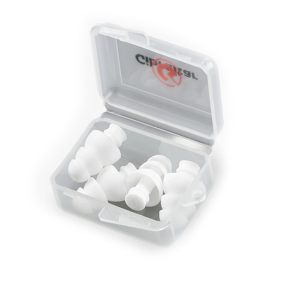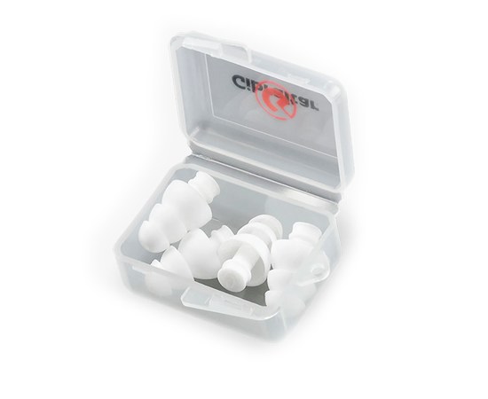 Беруши для барабанщика, 2 пары в пластиковом кейсе, тонкие резиновые ребра, белый цвет.