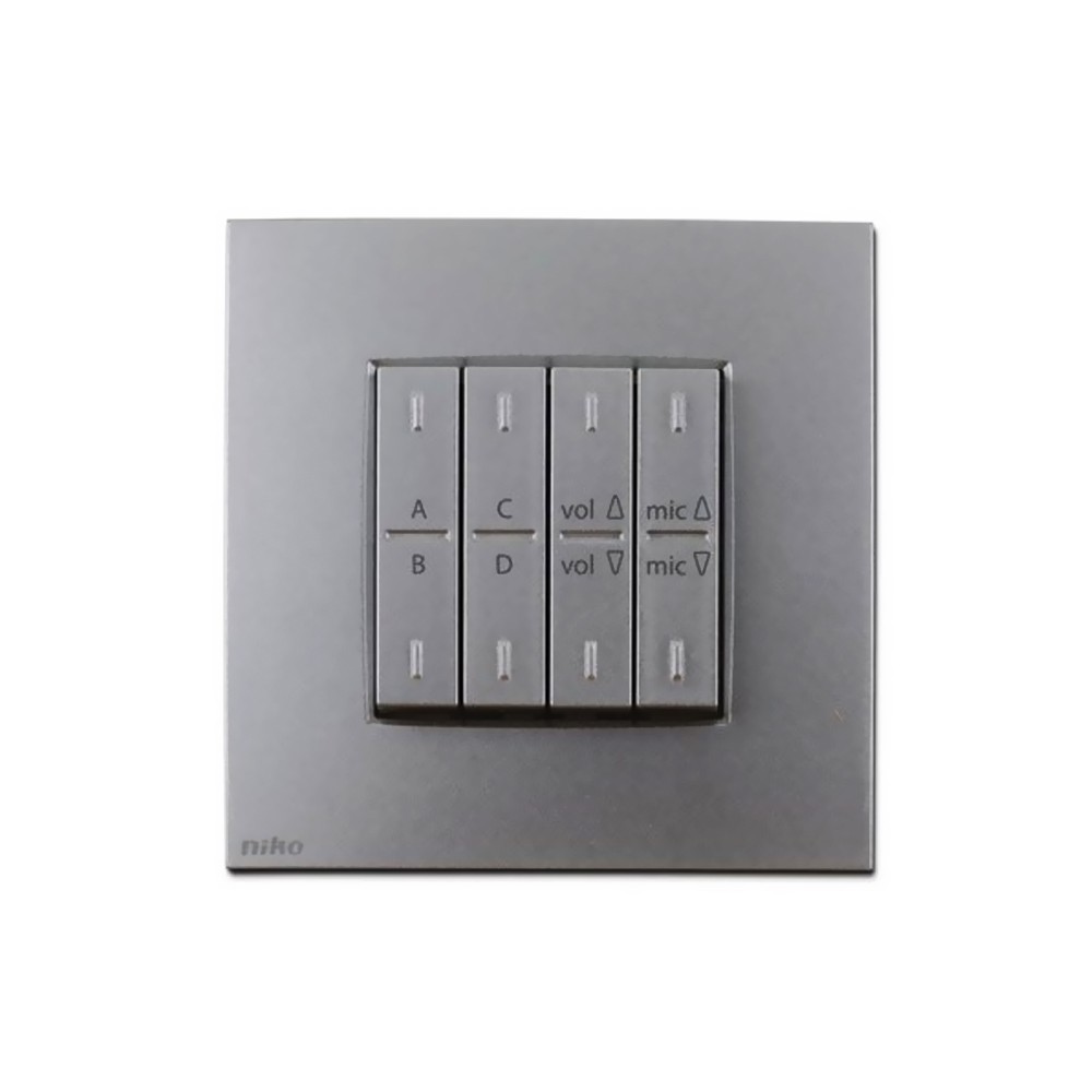 Беспроводная панель управления, позволяет выбирать источники сигнала подключенные к PM1122 - микрофоны и проигрыватели, и дистанционно управлять их громкостью; рабочая частота панели - 868,3 МГц, удаление от приемника - около 30 метров, максимально - 100 метров при прямой видимости.