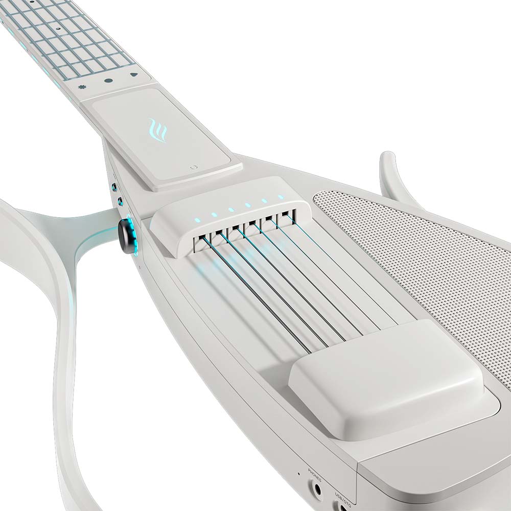 Гриф оснащён сенсорными зонами, LED-подсветкой и поддерживает стандартные аккорды, баррэ, режим соло и переключение инструментальных тембров. В соло-режиме можно выбирать гитарные, синтезаторные, клавишные и дополнительные тембры через приложение. Поддерживаются Palm Mute, Force Touch с влиянием силы нажатия на звук, демпфирование струн и динамическое управление - всё для выразительного исполнения.