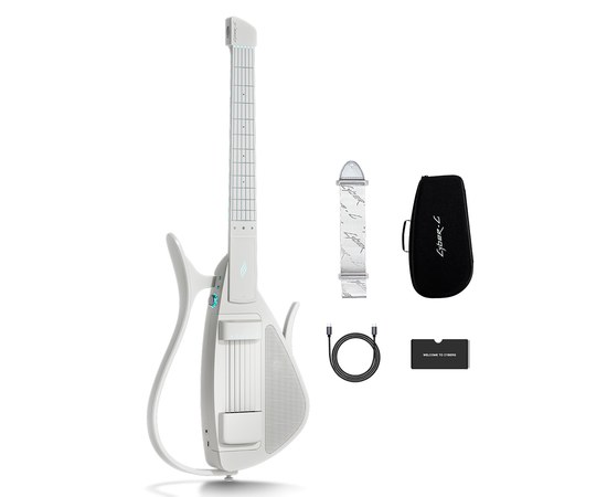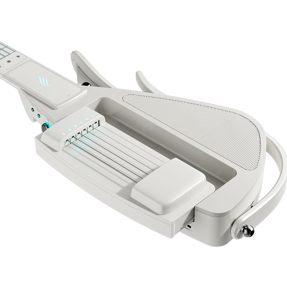 Гибридная смарт-гитара нового поколения с физическими струнами и цифровым съёмным модулем, идеально подходит для контента и лайв выступлений, отличное решение для начинающих и продвинутых гитаристов. Интеграция с мобильным приложением Enya Music, встроенные Hi-Fi динамики 10W и 20W, компактный облегчённый корпус, сенсорные зоны и LED подсветка грифа, датчики касания и силы нажатия, 21 лад с системой определения позиции, поддержка стандартных аккордов и баррэ, режим соло с выбором гитарных, синтезаторных, клавишных тембров и дополнительных звуков через приложение; 24 встроенных тона, два режима Standard Mode и Auto Mode, поддержка Palm Mute, Force Touch, демпфирования и динамического управления; ручка громкости и транспонирования, кнопки MODE и FUNC, индикаторы состояния, выходы 3.5 мм и 6.35 мм с возможностью подключения наушников и внешнего усилителя, USB Type C для зарядки и подключения, поддержка OTG и Bluetooth, встроенный аккумулятор 3400 mAh с индикацией уровня заряда, режим энергосбережения и автоотключения, белый цвет.
