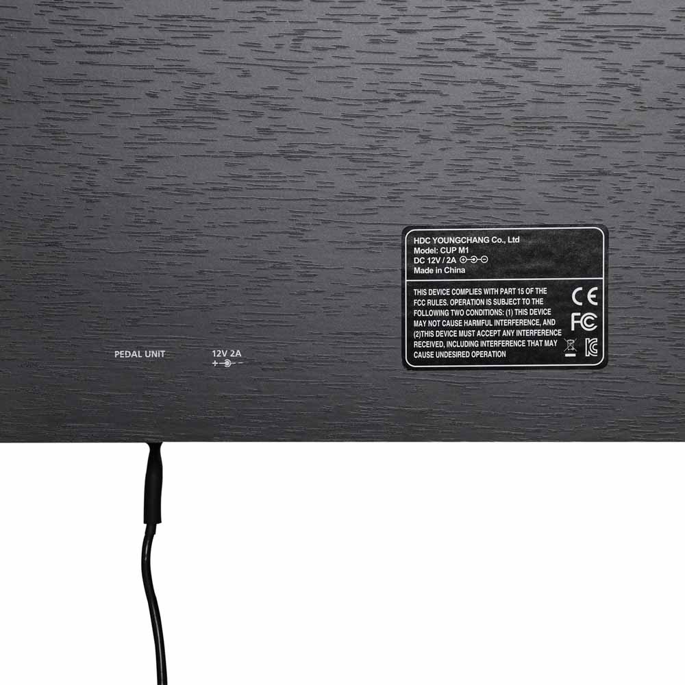 CUP M1 оснащён двумя динамиками по 15 Вт с цифровыми усилителями — всего 30 Вт чистой стереомощности. Система трёх педалей с функцией полудемпфера (включая сустейн, состенуто и софт) воссоздаёт нюансы классического фортепиано.