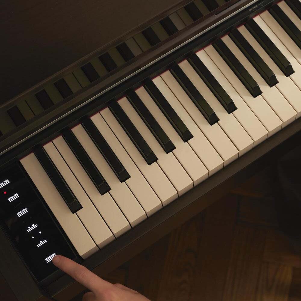 Над клавишами находится панель визуальной информации — уникальный инновационный визуализатор, который реагирует на вашу игру и расширяет ее возможности. Будучи метрономом, он облегчает практику, отображая пульсирующий ритм в выбранных вами шаблонах. Демонстрируя силу игры и глубину педали, это также помогает учителям лучше помогать своим ученикам совершенствовать свою технику. Он может даже реагировать на входящий звук по Bluetooth, обеспечивая красивую и настраиваемую визуализацию в соответствии с любым настроением. Панель визуальной информации также можно отключить, чтобы она не отвлекала ваше внимание во время игры.