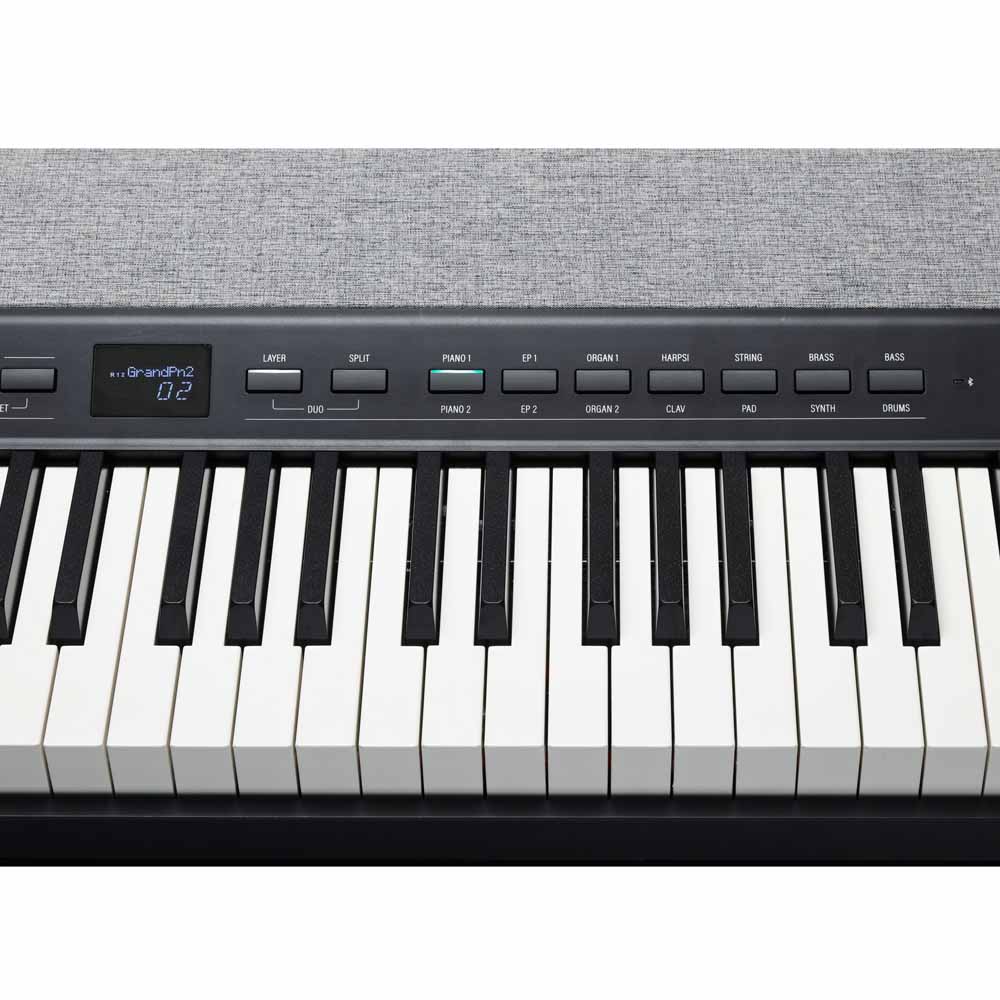 Цифровое пианино, клавиатура 88-клавиш H1 Ivory с 4-зонной молоточковой механикой, клавиши с покрытием цвета слоновой кости и текстурой дерева, 256 голосов полифонии, 28 заводских инструментов, звуковая библиотека KORE 2.1 объёмом 2 ГБ с немецкими рояльными сэмплами и профессиональными звуками Kurzweil, режимы разделения, наслоения и дуэта с настраиваемой точкой разделения, встроенный ритмический аккомпанемент, метроном с 12 размерами такта, Bluetooth Audio и MIDI для беспроводного подключения устройств, USB Audio и MIDI для работы с DAW, однодорожечный MIDI-рекордер, стереосистема 30 Вт с четырьмя динамиками и двумя усилителями по 15 Вт, интуитивная панель управления с цветными кнопками и ЖК-дисплеем, в комплекте пюпитр и стандартная педаль сустейна; черный цвет корпуса.