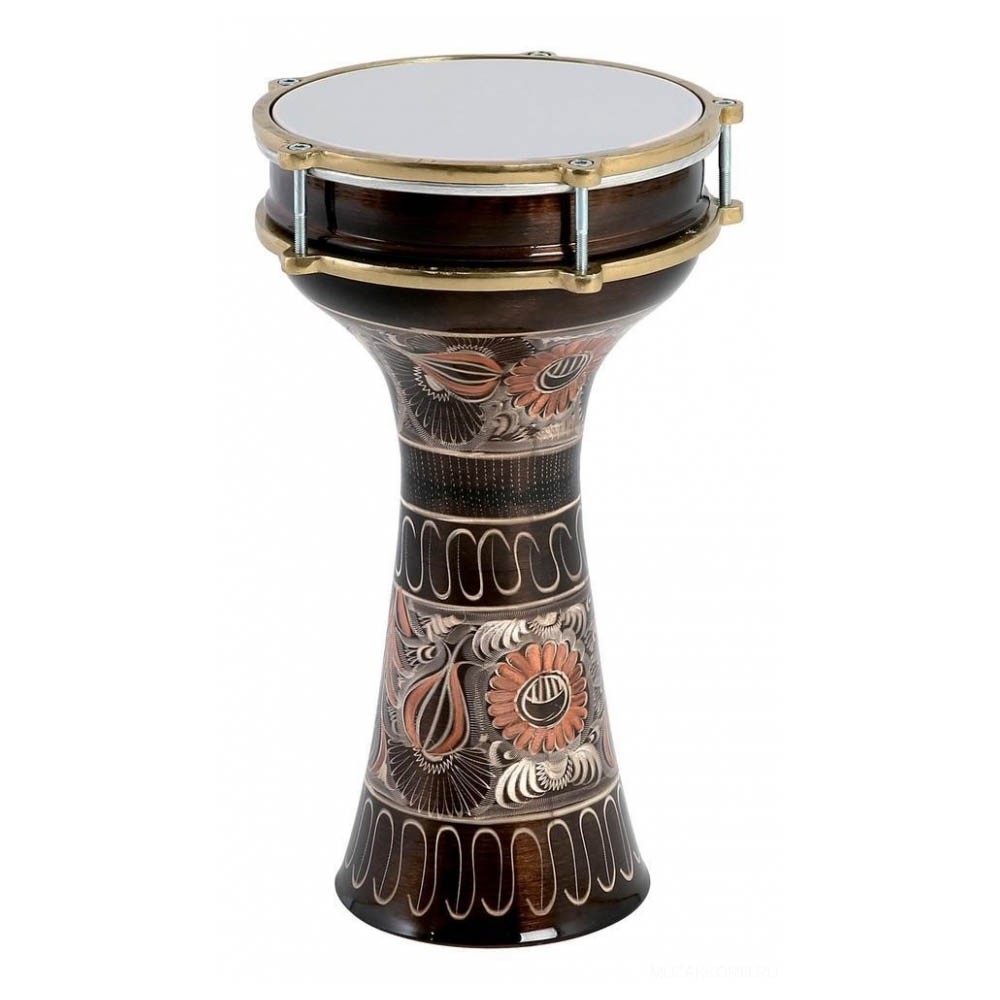 Профессиональный этнический барабан дарбука, корпус изготовлен из меди с чеканкой высокого качества, турецкая конструкция 8", настраиваемая мембрана, в комплекте ключ для настройки.