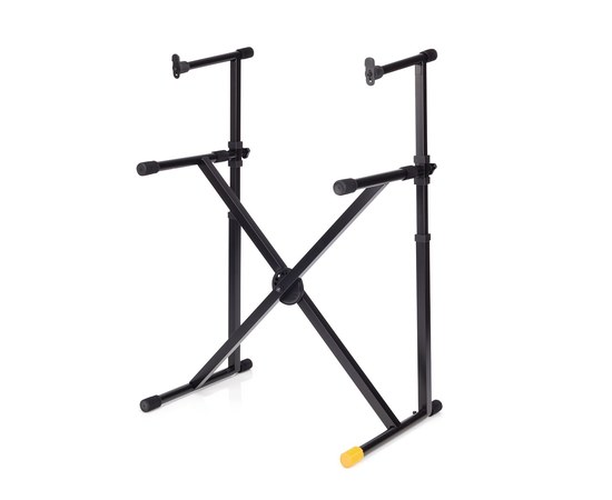 Двойная стойка KS210B от компании HERCULES предоставляет надежную поддержку для практически любого типа клавишного инструмента, благодаря сверхмощной металлической конструкции. Стойка имеет 2 яруса, также 4 уровня регулировки высоты. Второй ярус этой удивительно устойчивой и прочной, и при этом легкой и удобной в применении, конструкции регулируется одновременно с высотой основного яруса. Благодаря дизайну EZ-Lok, установление стойки производится легко и просто!