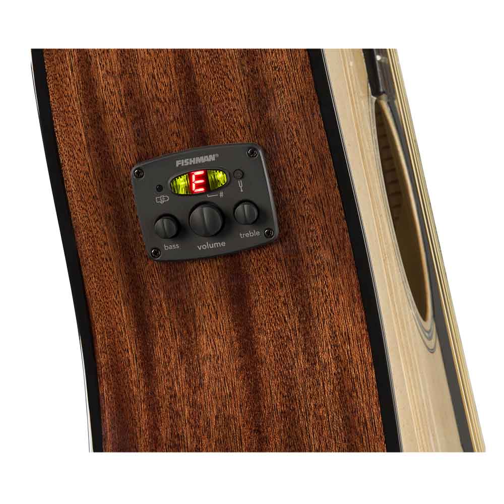 Система предусилителя Fishman добавляет непревзойденную производительность с различными встроенными элементами управления, которые позволяют настраивать тон инструмента без ущерба для его чистого, насыщенного и резонансного звучания. Встроенный тюнер удобно расположен на обечайке, чтобы вы могли его видеть и легко контролировать настройку.