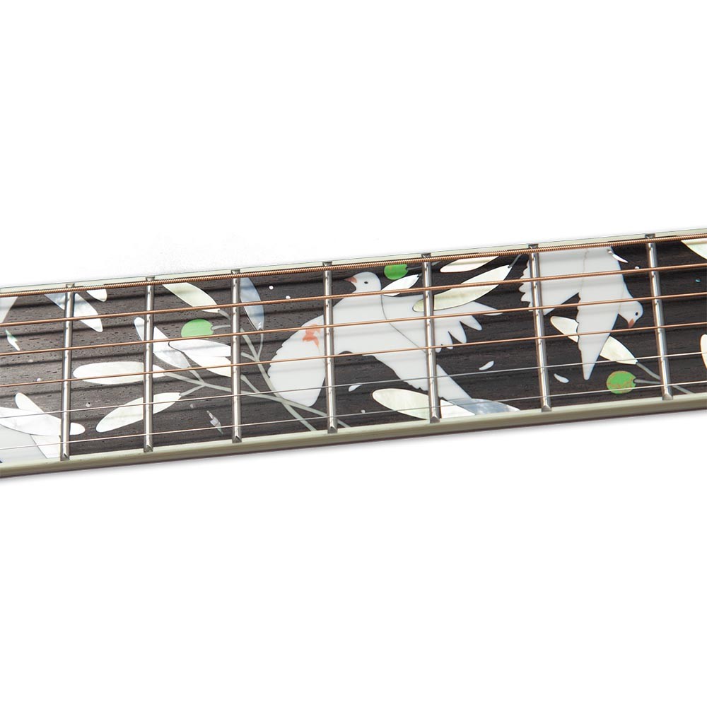 Каждый год Takamine демонстрирует свое изысканное мастерство, создавая новую долгожданную модель из ограниченной серии LTD! Электроакустическая гитара LTD2020 "Peace" в этом году знаменует начало нового десятилетия и олицевтворяет мирное будущее. Лады грифа украшены прекрасными изображениями голубей и ветвей оливкового дерева, с использованием разноцветных камней и ракушек. Верхняя дека выполнена из цельной ели и окрашена в уникальный цвет зеленого чая, нижняя дека и обечайка - из отборного овангкола с яркой текстурой. На инструмент установлен пьезозвукосниматель с предусилителем Takamine CT4-DX, оснащенный 2-канальным соединением с возможностью подключения второго датчика, а также имеются 5-полосный эквалайзер, 2 Notch-фильтра и встроенный тюнер. Корпус размера концерт воспроизводит теплое и сфокусированное звучание с легкой динамикой и превосходным балансом. По традиции LTD серия выпускается в ограниченном количестве только в 2020 году и никогда не будет производится позже.