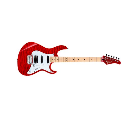 Электрогитара, корпус из американского болотного ясеня с топом из клена, гриф из  канадского твердого клена с накладкой из клена радиусом 240 мм (9.45"), комплект звукоснимателей 2 сингла + хамбакер Alnico V S-S-H, мензура 648 мм (25.5 дюймов), бридж с 2-х точечным тремоло с металлическим струнодержателем, 1 громкость, 1 тон, 5-ти позиционный переключатель, цвет Transparent Red.