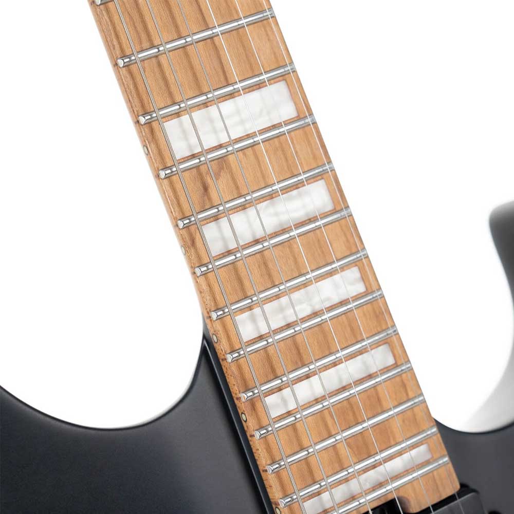 Сквозной гриф гарантирует максимальную устойчивость, плавный доступ ко всем ладам и выразительный, продолжительный сустейн. Корпус из липы с натуральной накладкой формирует насыщенную подачу звука и уверенное звучание во всех регистрах, позволяя гитаре одинаково хорошо чувствовать себя как в агрессивных стилях, так и в более спокойных детализированных партиях.