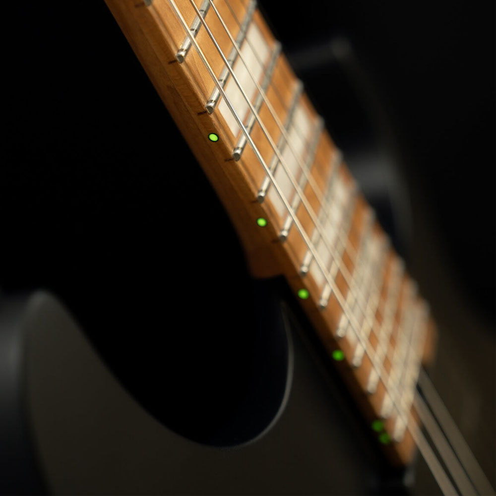 Гриф из обожженного клена и ореха с накладкой из того же материала отличается высокой прочностью и удобством. 24 лада Jumbo из нержавеющей стали обеспечивают быструю, точную и выразительную игру. Светящиеся боковые точки помогают ориентироваться на грифе даже в самых темных условиях, гарантируя контроль в любой ситуации.