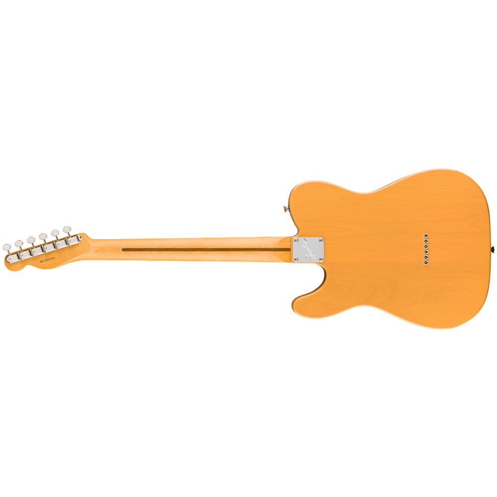 Электрогитара, форма Telecaster®, серия American Professional Classic Hotshot Telecaster, корпус из ольхи, звукосниматели Coastline® '63 Single-Coil Telecaster® + Coastline® '57 Single-Coil Stratocaster® RWRP (SSS) в винтажном стиле на основе дизайна Fender Pure Vintage, современный кленовый гриф Modern C с накладкой из палисандра радиусом 9,5 дюймов, 22 лада Medium Jumbo, фурнитура в винтажном стиле, 3-седельный бридж Telecaster® с креплением струн сквозь корпус, колки Fender Staggered ClassicGear™, цвет Butterscotch Blonde, в комплекте чехол.