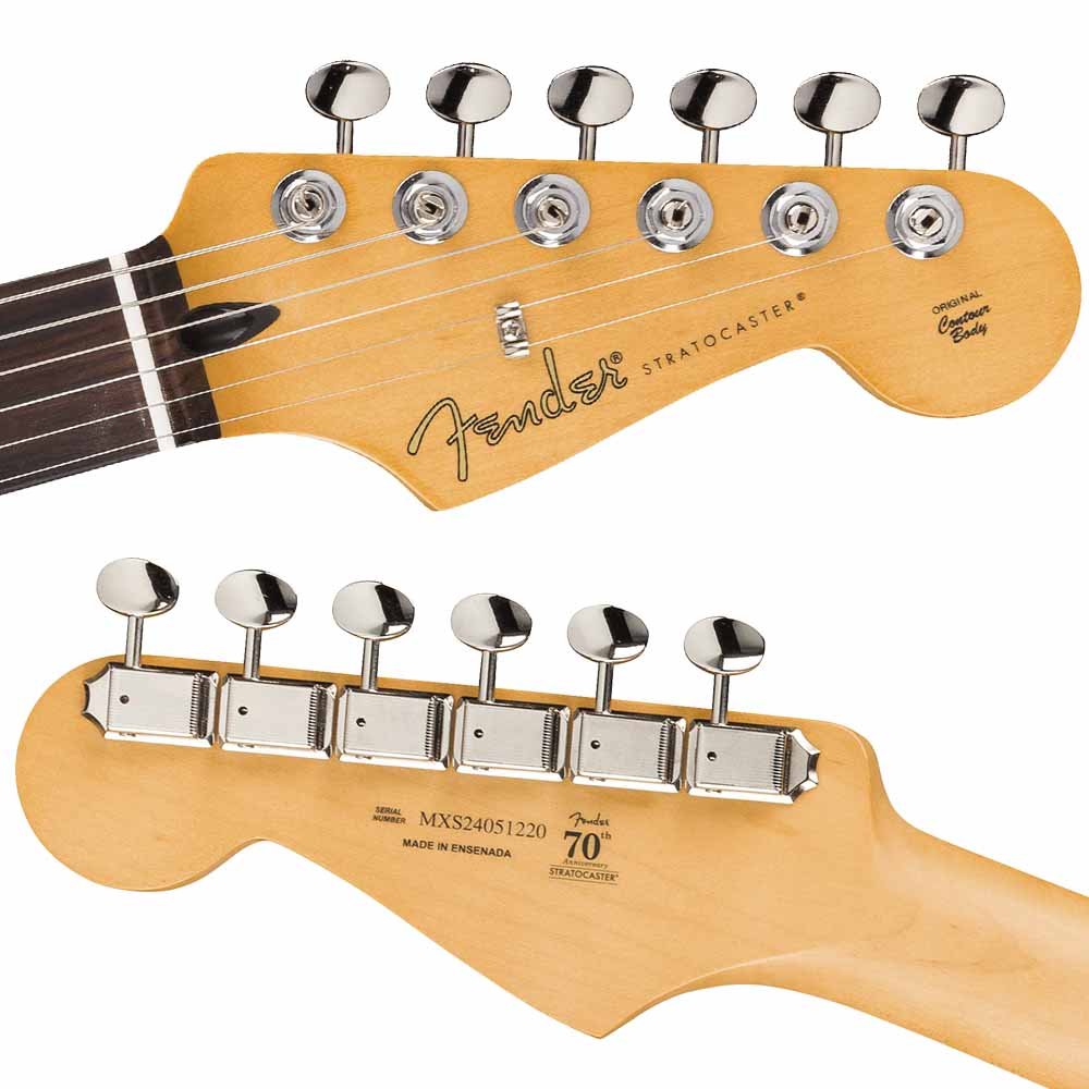 Двухточечное синхронизированное тремоло с гнутыми стальными седлами открывает пространство для выразительных вибрато и мощных dive bombs, сохраняя при этом точную настройку. А колки ClassicGear™ с передаточным числом 18:1 — это баланс винтажной эстетики и современной точности!
