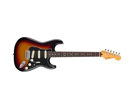 Электрогитара серии Player II, корпус из ольхи, современный профиль грифа "C" с сатинированным покрытием, накладка грифа из палисандра радиусом 9,5 дюйма с закруглёнными краями, 22 лада Medium Jumbo, звукосниматели Player Series Alnico V Single-Coil Strat®, 5-позиционный переключатель, двухточечное синхронизированное тремоло с изогнутыми стальными седлами, колки ClassicGear™ 18:1, лимитированная отделка Sparkle 3-Color Sunburst.