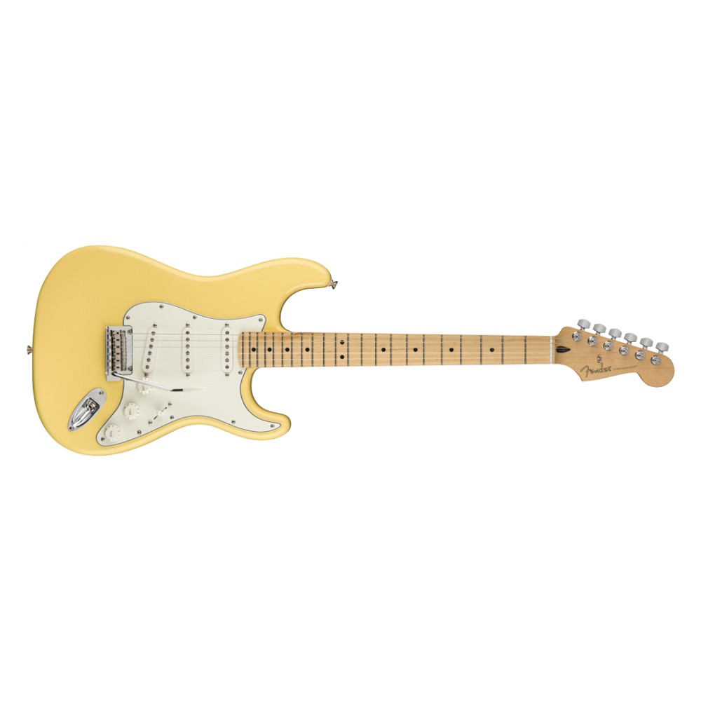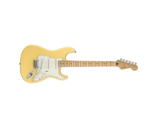 6-ти струнная электрогитара, форма Stratocaster®, корпус из ольхи, гриф из клена, накладка грифа из клена радиусом 9.5” (241 мм), форма грифа "Modern С", 3 звукоснимателя -Player Series Alnico 5 Strat® Single-Coil (SSS); мензура 25.5" (648 мм), колки Standard Cast/Sealed, цвет Buttercream.