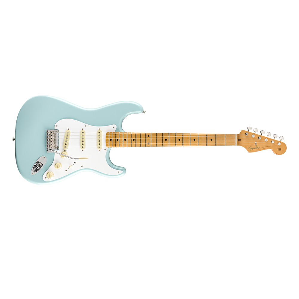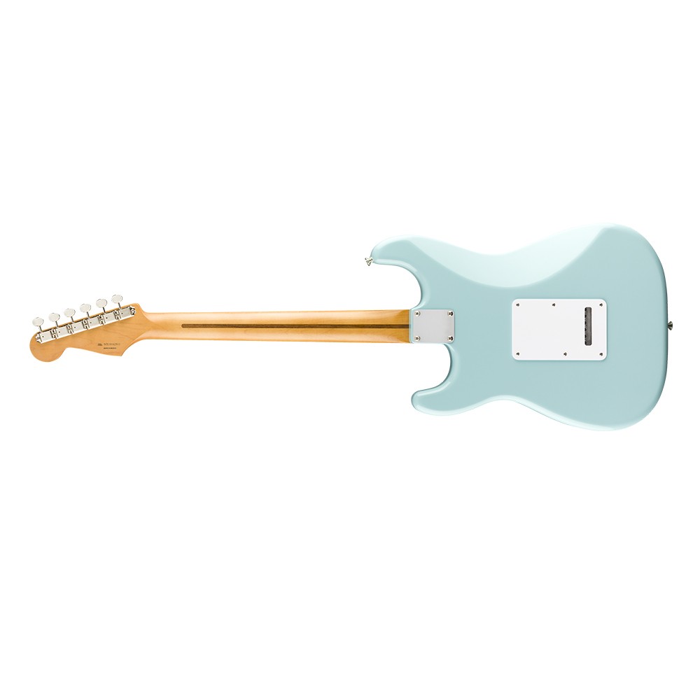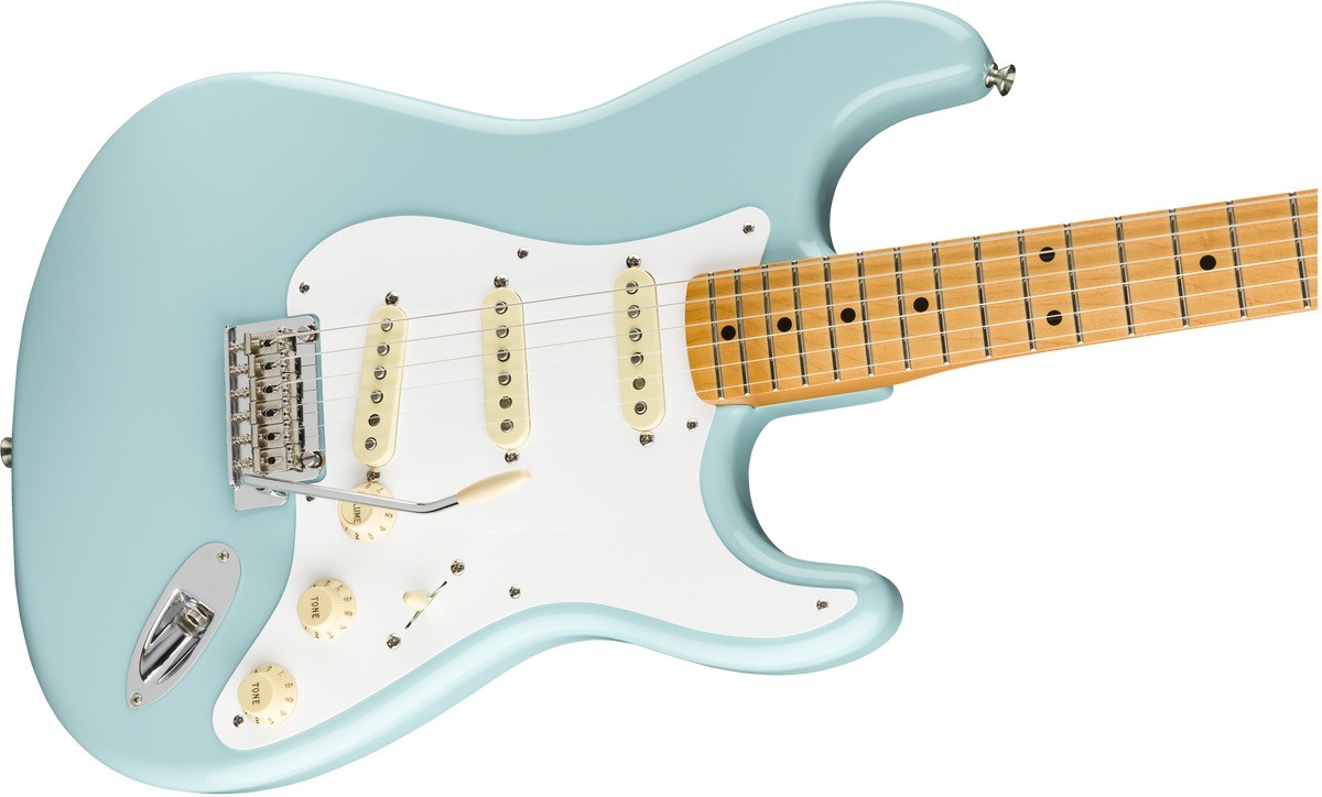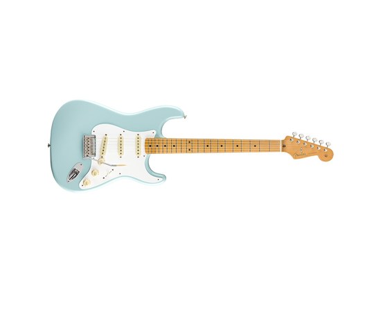 6-ти струнная электрогитара, форма Stratocaster®, корпус из ольхи, гриф из клена с кленовой накладкой радиусом 9,5", форма грифа "Modern С", звукосниматели Vintage-Style '50s Single-Coil Hot Strat® (SSS); 21 лад Medium Jumbo, мензура 25.5" (648 мм), колки Vintage-Style Locking, в комплекте чехол Deluxe Gig Bag, цвет Daphne Blue.