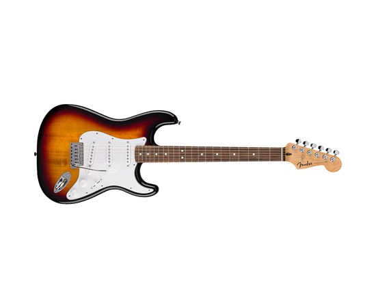 Электрогитара формы Stratocaster, корпус из тополя с полиуретановым лаковым покрытием, удобный гриф из клёна с накладкой из индийского лавра радиусом 9,5 дюйма, профиль грифа "C", три сингла Standard Single-Coil Strat®, бридж со стандартным 2-точечным тремоло с блочными седлами, трёхслойный белый пикгард, цвет 3-Color Sunburst.