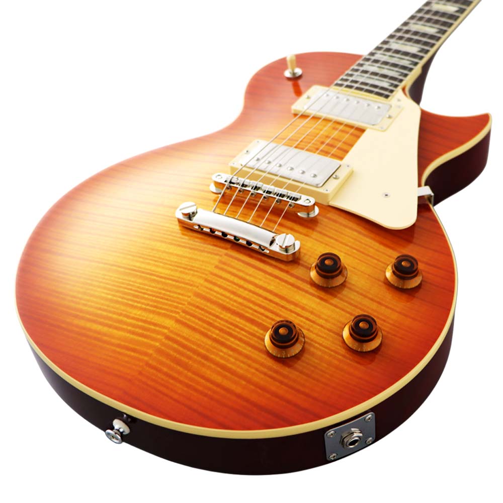 Электрогитара, форма Лес Пол, верхняя дека из огненного клёна, полая нижняя дека из красного дерева, гриф из красного дерева с накладкой из палисандра с профилем U, система кругового расположения ладов C.F.S., два звукоснимателя хамбакера FGN Alnico 5, 3-позиционный переключатель, 2 регулятора громкости, 2 регулятора тона, традиционный бридж и струнодержатель GOTOH, точные и плавные колки GOTOH SD90-SL в винтажном стиле, 22 лада Medium Jumbo, мензура 24,75" (628 мм), в комплекте фирменный чехол, цвет Faded Cherry Burst.