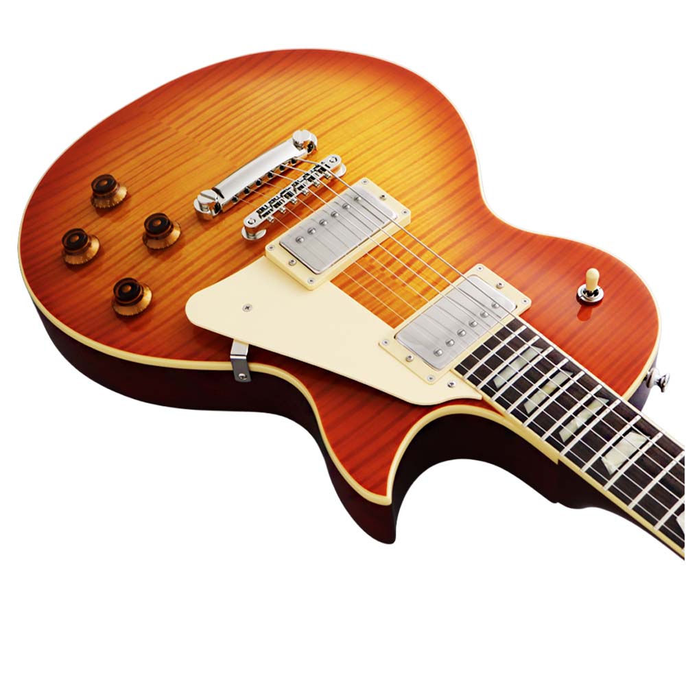 Верхняя дека электрогитары выполнена из огненного клёна, что придаёт инструменту эстетическую красоту и яркий, плотный характер звучания с отличной артикуляцией. Полая нижняя дека из красного дерева обеспечивает тёплое, объёмное звучание с акцентом на средние частоты, создавая классический «винтажный» тембр. Глянцевое покрытие корпуса подчёркивает внешний вид и защищает древесину. Такая конструкция обеспечивает баланс между эстетикой и практичностью, делая инструмент универсальным как для сцены, так и для студии.