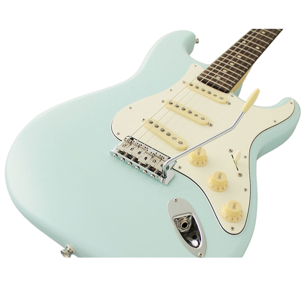 Электрогитара, корпус из ольхи с глянцевым топом, гриф из клёна с накладкой из палисандра с переменным радиусом с профилем U, система кругового расположения ладов C.F.S., светящиеся боковые метки на грифе, три сингловых звукоснимателя Seymour Duncan® Vintage Staggered SSL-1, 5-позиционный переключатель, регуляторы громкости и тона, 1 блендер, тремоло-бридж с двумя шарнирами и сёдлами из изогнутой стали в винтажном стиле, колки GOTOH® SD91-05M MG, 22 средних лада, мензура 25,5" (648 мм), хромированная фурнитура, в комплекте фирменный чехол, цвет бледно-синий Соник (Pale Sonic Blue).