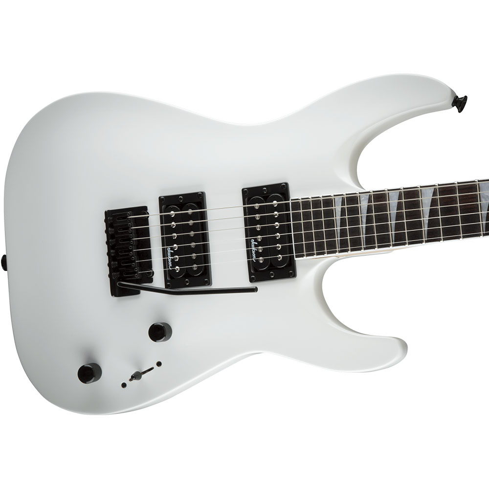 Электрогитара, форма корпуса Dinky™, корпус из тополя с глянцевой отделкой, гриф из клена с графитовым армированием, накладка на гриф из амаранта с составным радиусом 12"-16", мензура 25.5" (64,77 см), 24 лада Jumbo, фурнитура - черный хром, звукосниматели 2 х Jackson® High-Output Humbucking, управление Master Volume и Master Tone, бридж 2-Point Fulcrum Tremolo, литые колки Jackson® Sealed Die-Cast, цвет - чистый белый.