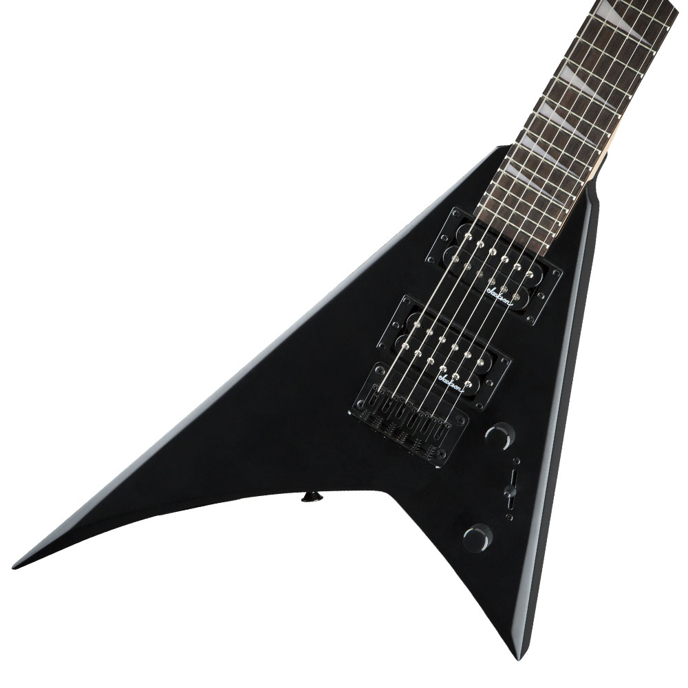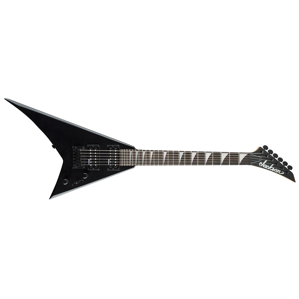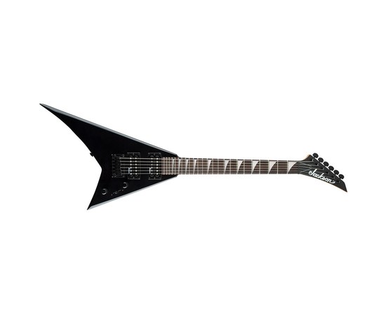 Электрогитара, корпус Rhoads в форме стрелы из тополя с глянцевой отделкой, гриф из клёна с накладкой из амаранта с графитовым армированием, мензура 22,5" (572 мм), 24 лада Jumbo, черная фурнитура, звукосниматели - 2 хамбакера Jackson® High-Output, управление - громкость и тон, литые колки, атласный черный цвет .