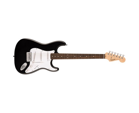 Электрогитара, форма Stratocaster®, лёгкий корпус из тополя, гриф из клёна с накладкой из индийского лавра, тонкий С-образный профиль грифа, три керамических сингл-звукоснимателя Squier, 5-позиционный переключатель, тремоло-бридж со съемным рычагом, 6-седельный винтажный синхронизированный тремоло с блочными седлами, герметичные колки для точной настройки, прочная хромированная фурнитура, черный цвет.