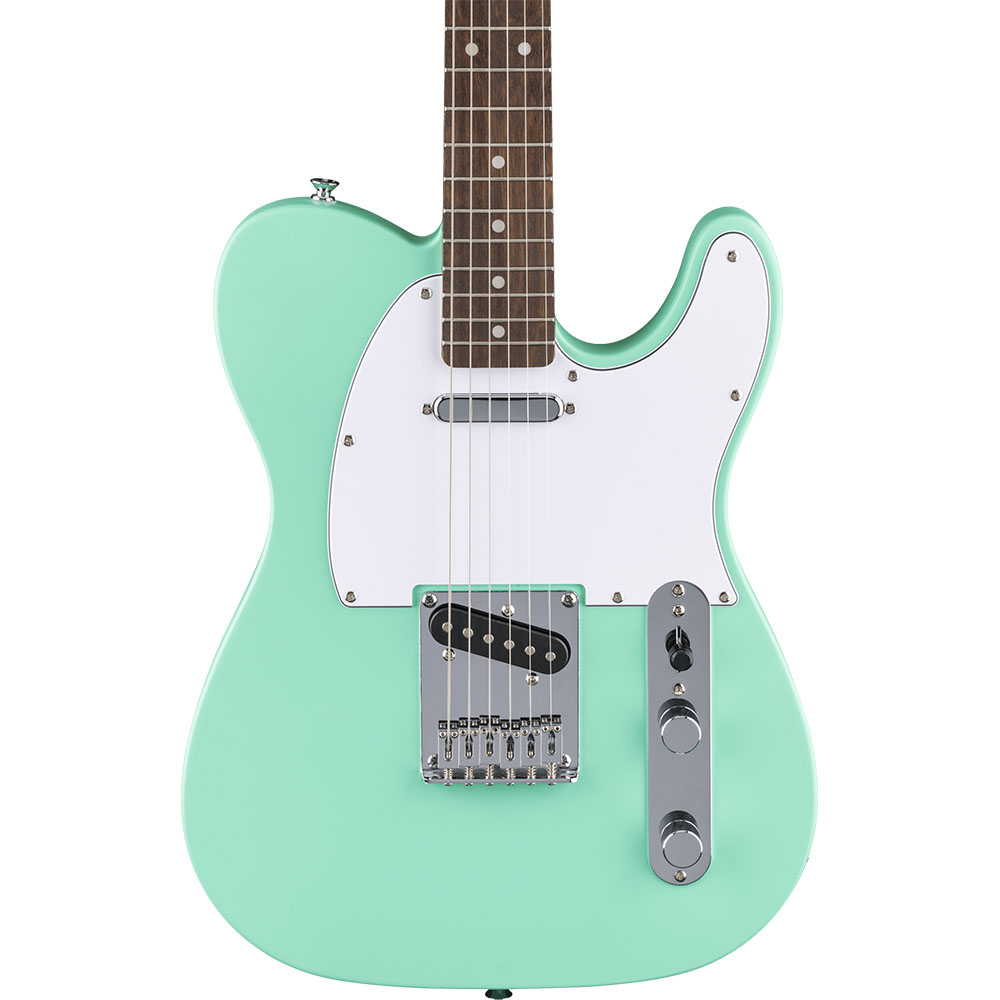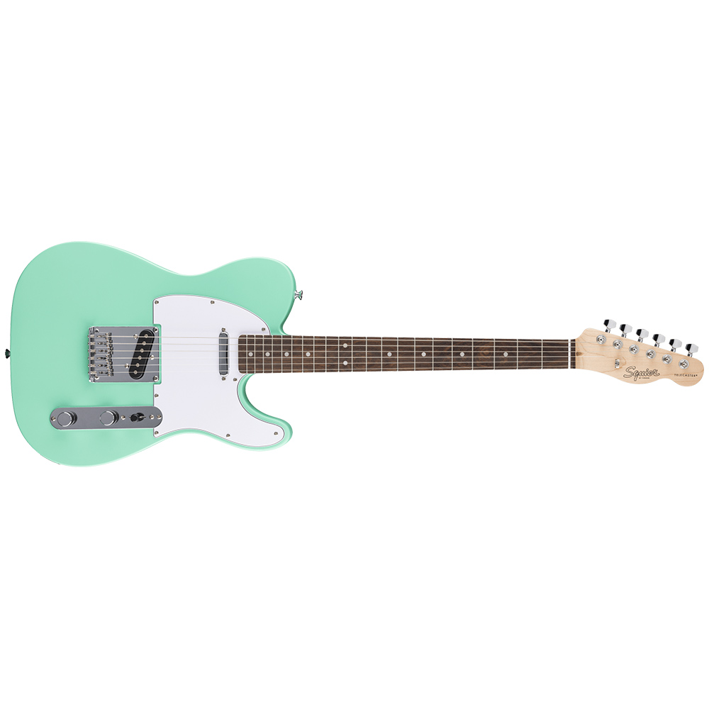 Электрогитара, форма Telecaster®, лёгкий корпус из тополя, гриф из клёна с накладкой из индийского лавра, тонкий С-образный профиль грифа, два керамических сингл-звукоснимателя Squier, 3-позиционный переключатель, бридж хардтейл с шестью блочными седлами, герметичные колки для точной настройки, прочная хромированная фурнитура, цвет Sea Foam Green.