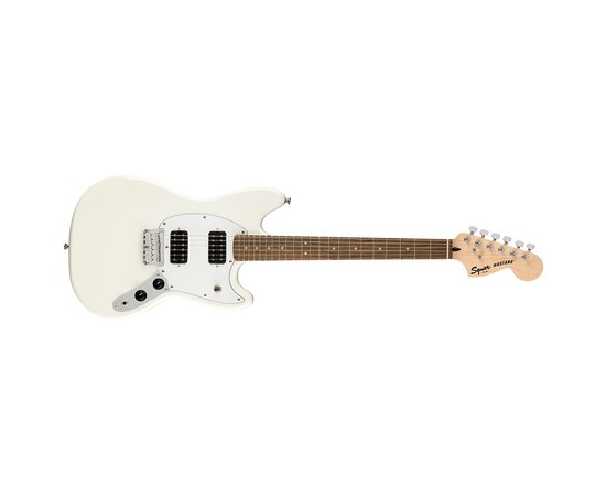 Squier FSR Bullet® Mustang® HH имеет красивый стильный корпус из тополя, выполненный в цвете Olympic White и покрытый полиуретановым лаковым покрытием, что придает инструменту особую изящность.