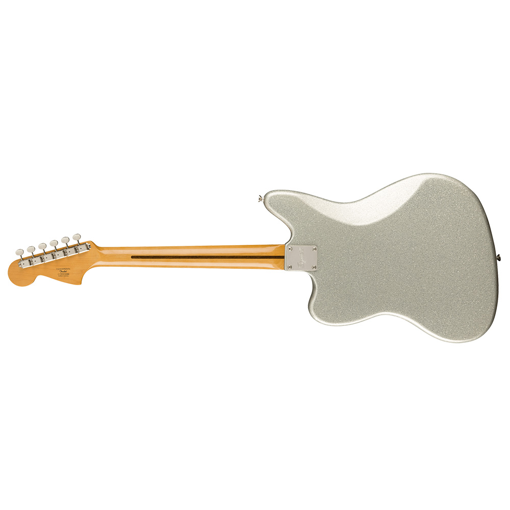 Squier FSR Classic Vibe '60s Jaguar® имеет потрясающий корпус из тополя, выполненный в блестящем цвете Silver Sparkle и покрытый полиуретановым лаковым покрытием, что придает инструменту особую изящность.