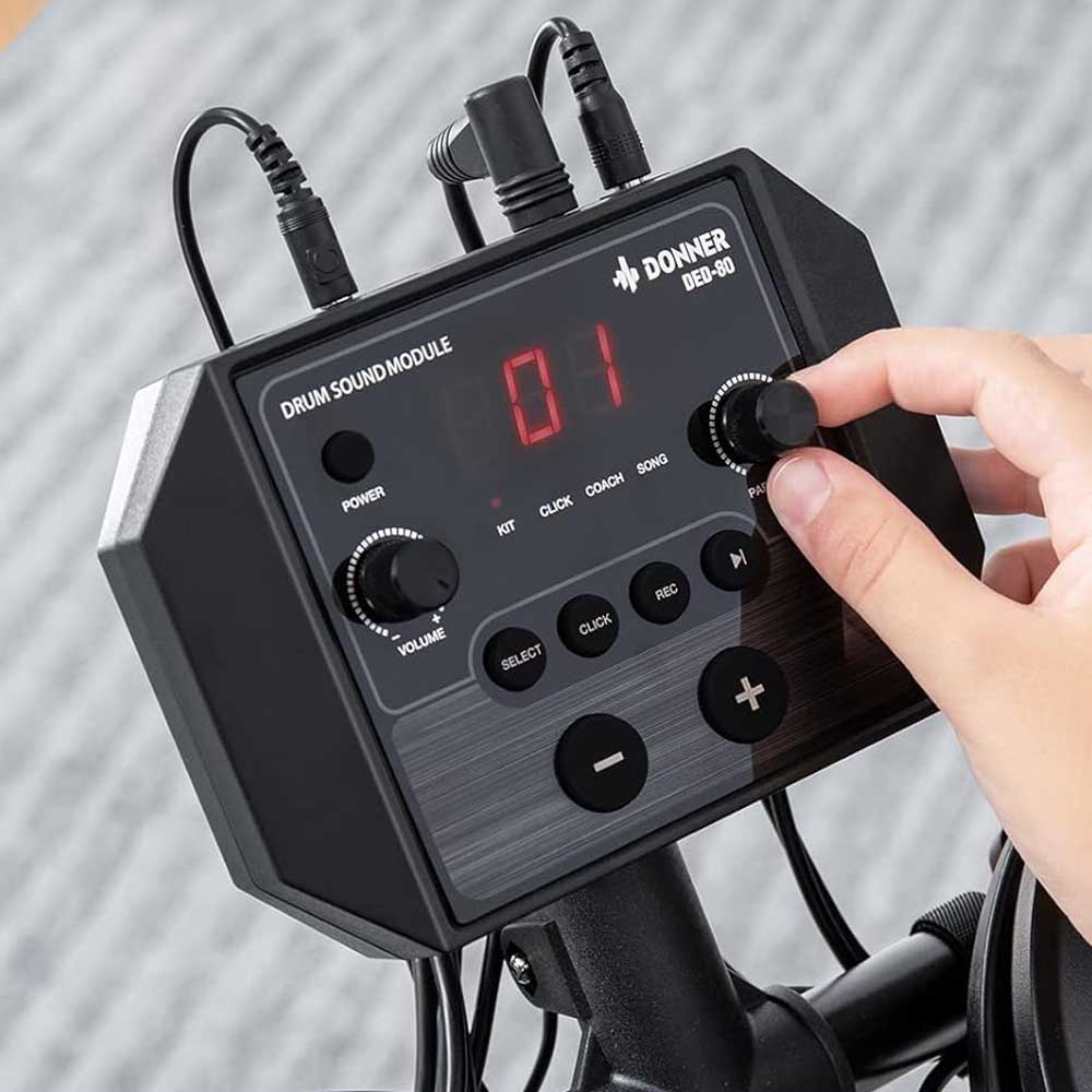 Donner DED-80P это компактная современная электронная ударная установка, предлагающая классное яркое звучание, которое отлично подойдет для обучения детей и подростков! Благодаря своей портативной конструкции DED-80P значительно меньше и легче своих акустических аналогов, что позволяет её легко транспортировать и хранить даже в небольших помещениях. Использование инновационных материалов в производстве этой электронной ударной установки обеспечивает максимальную бесшумность, что делает её идеальной для домашнего использования. На борту цифрового модуля имеются мощные обучающие функции, включая тренера по игре на барабанах, 30 треков аккомпанемента и забавные упражнения, которые помогают новичкам улучшить свои навыки игры и наслаждаться каждой нотой! Простой и интуитивно понятный интерфейс модуля позволяет легко настроить звук, темп и другие параметры. В нём также имеются функции записи, редактирования и обучения.
