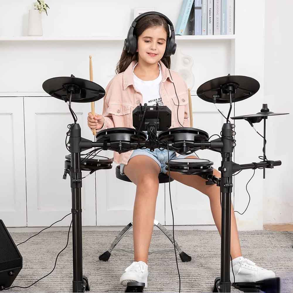 Электронная ударная установка Donner DED-80P имеет гибкую конструкцию стойки, которая позволяет регулировать высоту и угол наклона для всех юных игроков.