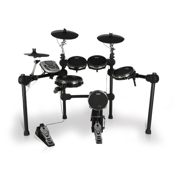 Электронная ударная установка, 5 барабанов и 3 тарелки, пэд хай-хэта воспроизводит полуоткрытое звучание, пэд малого барабана 10" две зоны воспроизводит удары в обод и пластик одновременно, поддерживает двойную педаль для бас-барабана, большой LCD экран с подсветкой, возможность записи и воспроизведения, возможность установки чувствительности пэдов и их баланса, установка кривых чувствительности.